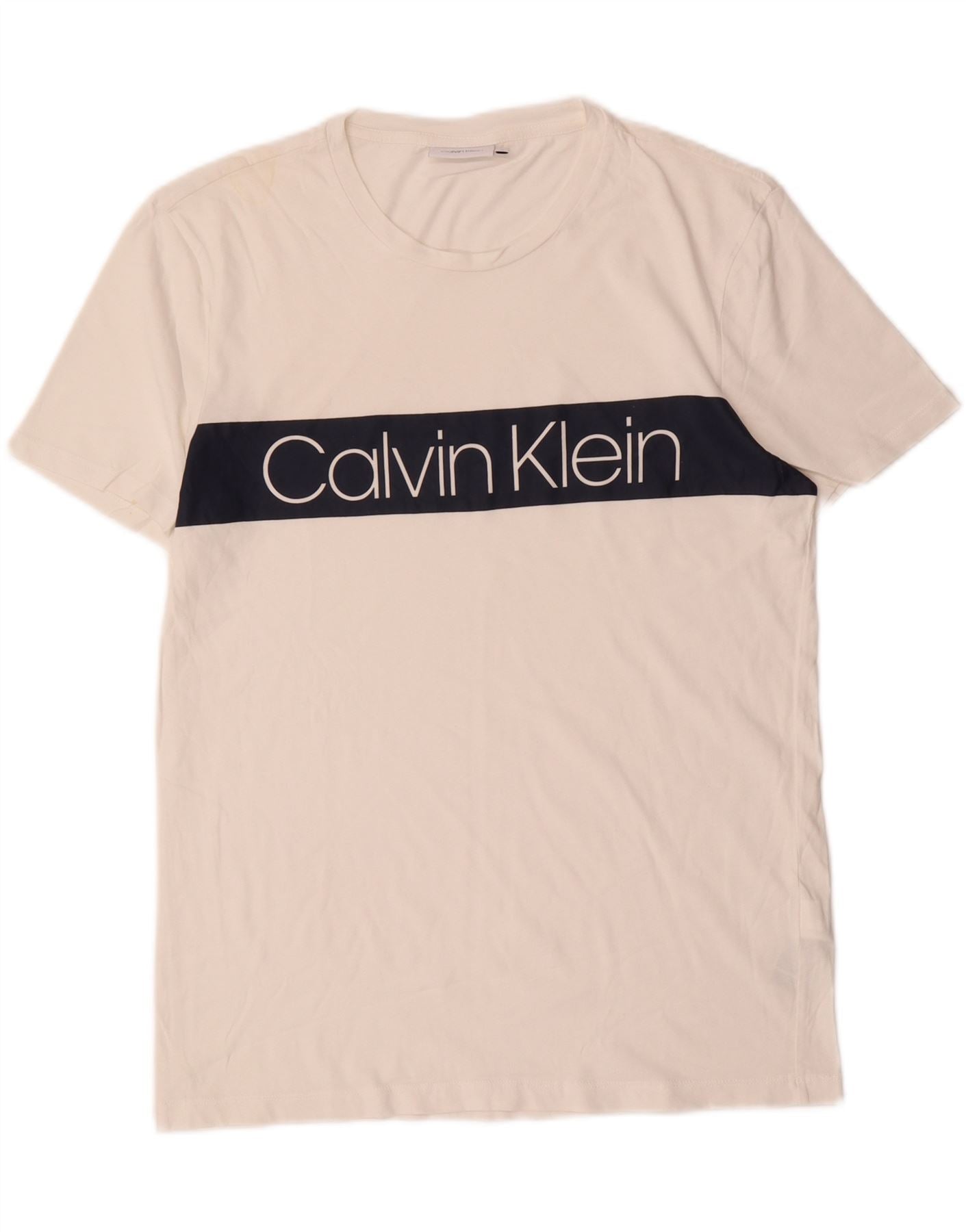 Męski T-shirt CALVIN KLEIN z grafiką, bawełniany, średniej wielkości, w blokach kolorów