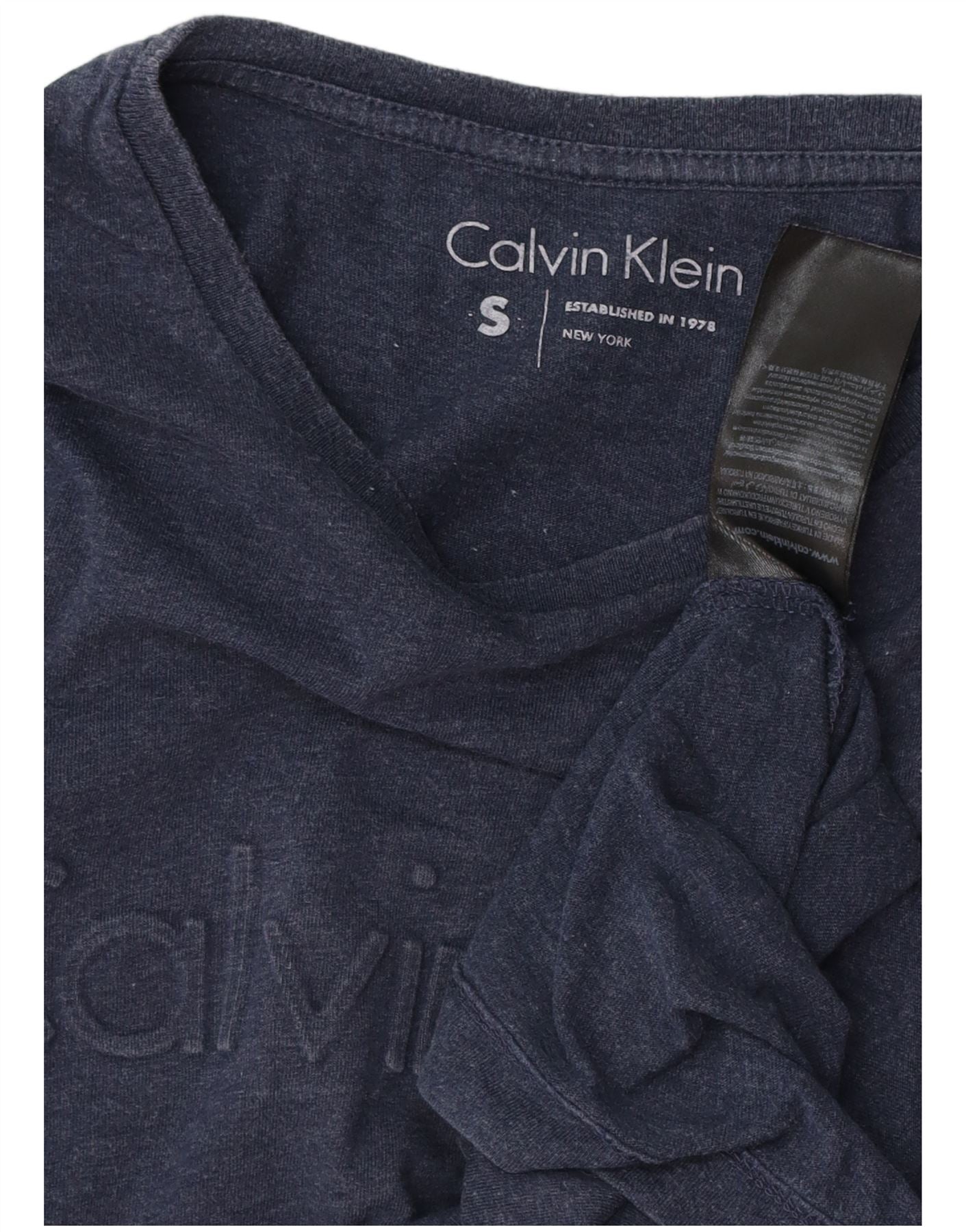 CALVIN KLEIN Męski top z grafiką z długim rękawem, mały, granatowy, bawełniany