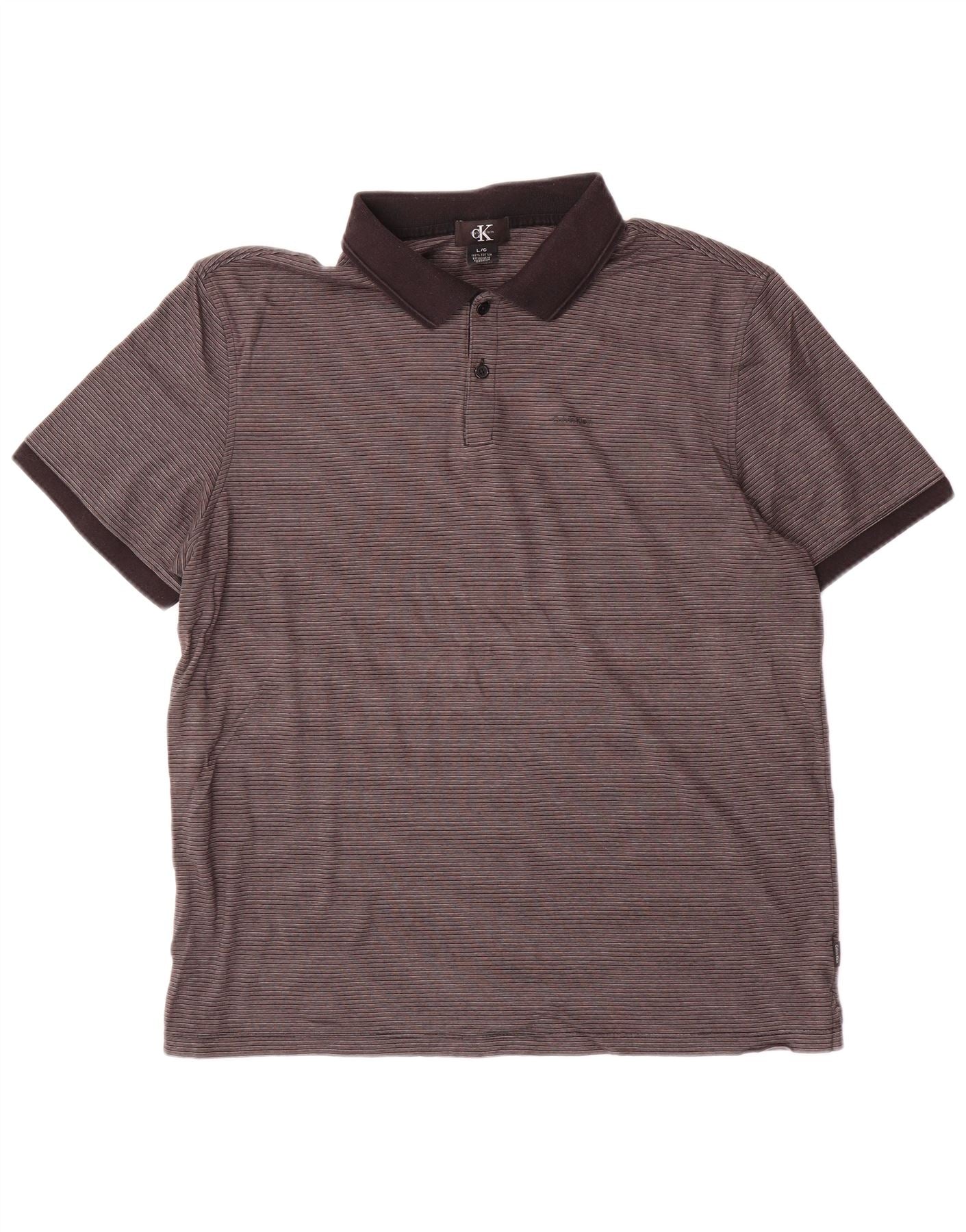 Męska koszulka polo CALVIN KLEIN, duża, szara, bawełniana w prążki