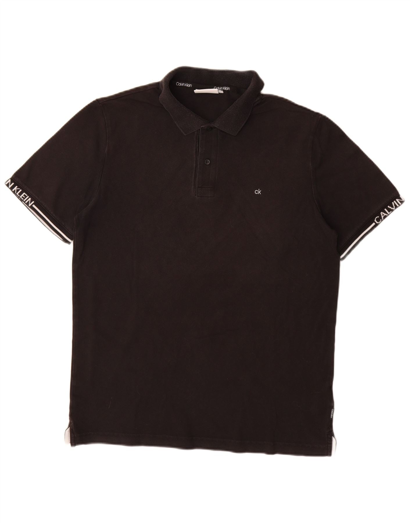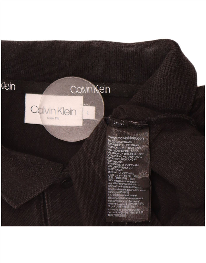 CALVIN KLEIN Mens Slim Fit Graphic Polo Shirt Large Black Cotton
