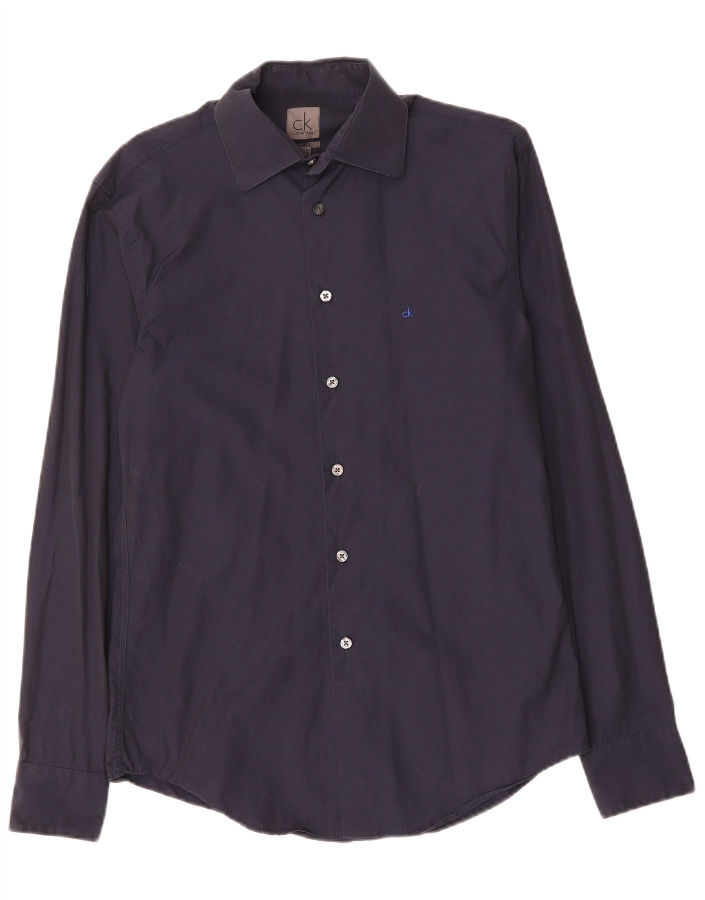 CALVIN KLEIN Męska koszula slim fit, mała, granatowa, bawełniana