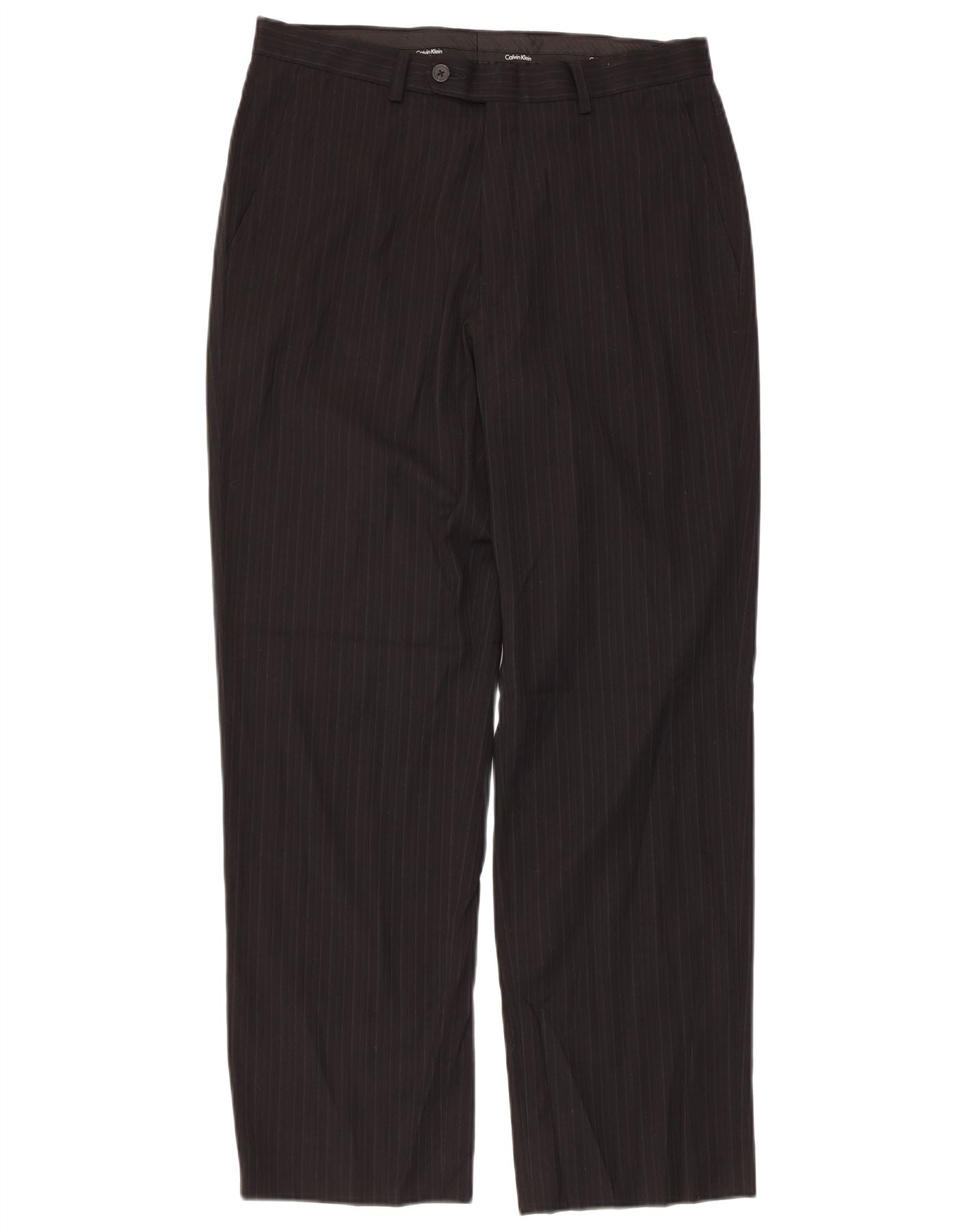 Męskie proste spodnie garniturowe CALVIN KLEIN W31 L30, czarny, prążkowany poliester