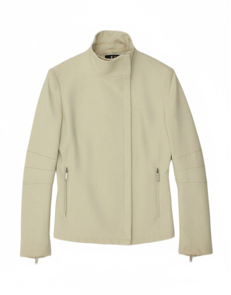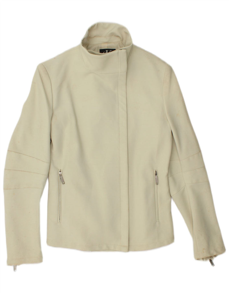 CALVIN KLEIN Womens Bomber Jacket US 6 Medium Off White Polyamide