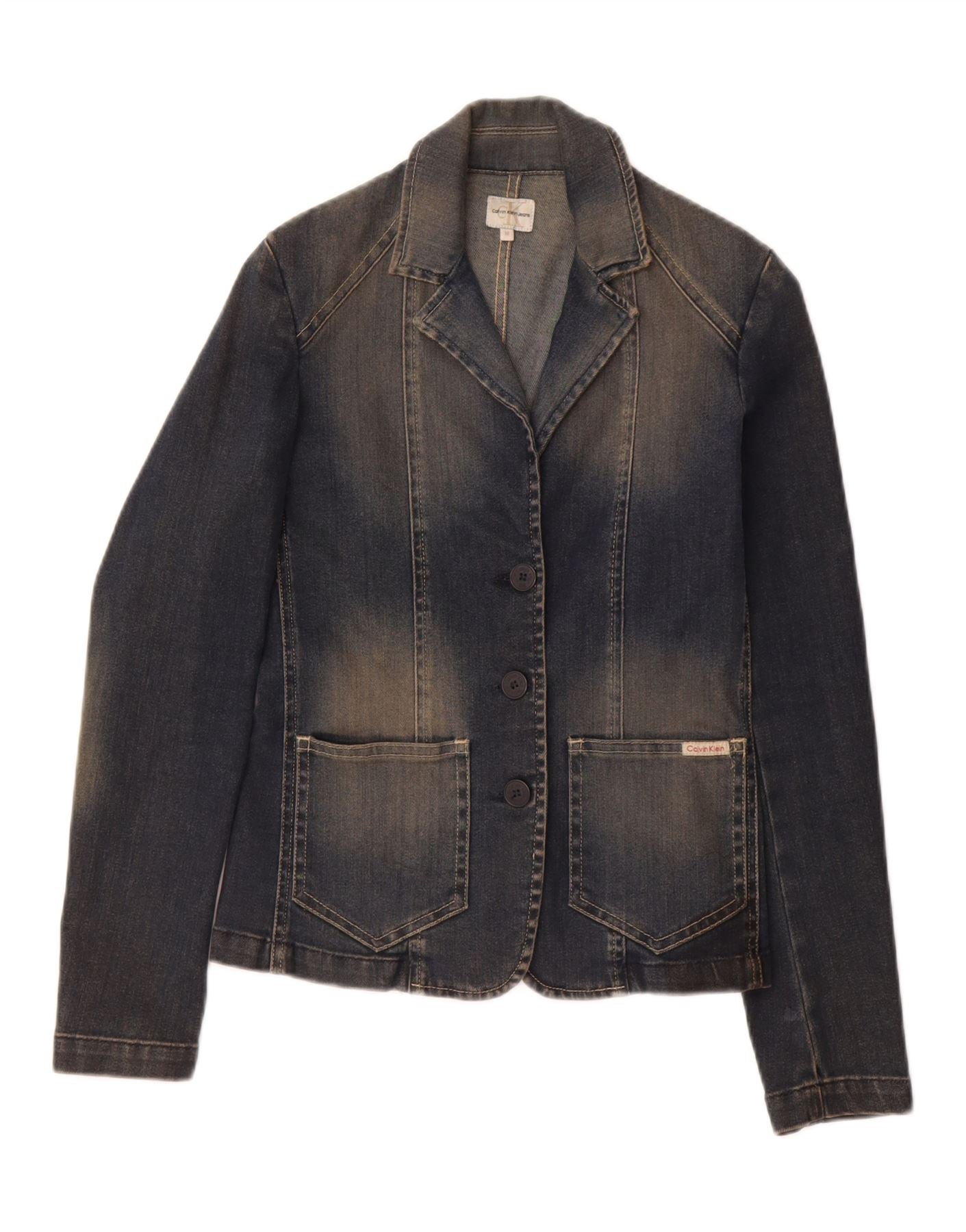 CALVIN KLEIN Womens Denim 3 Button Blazer Jacket UK 12 Medium Blue Cotton