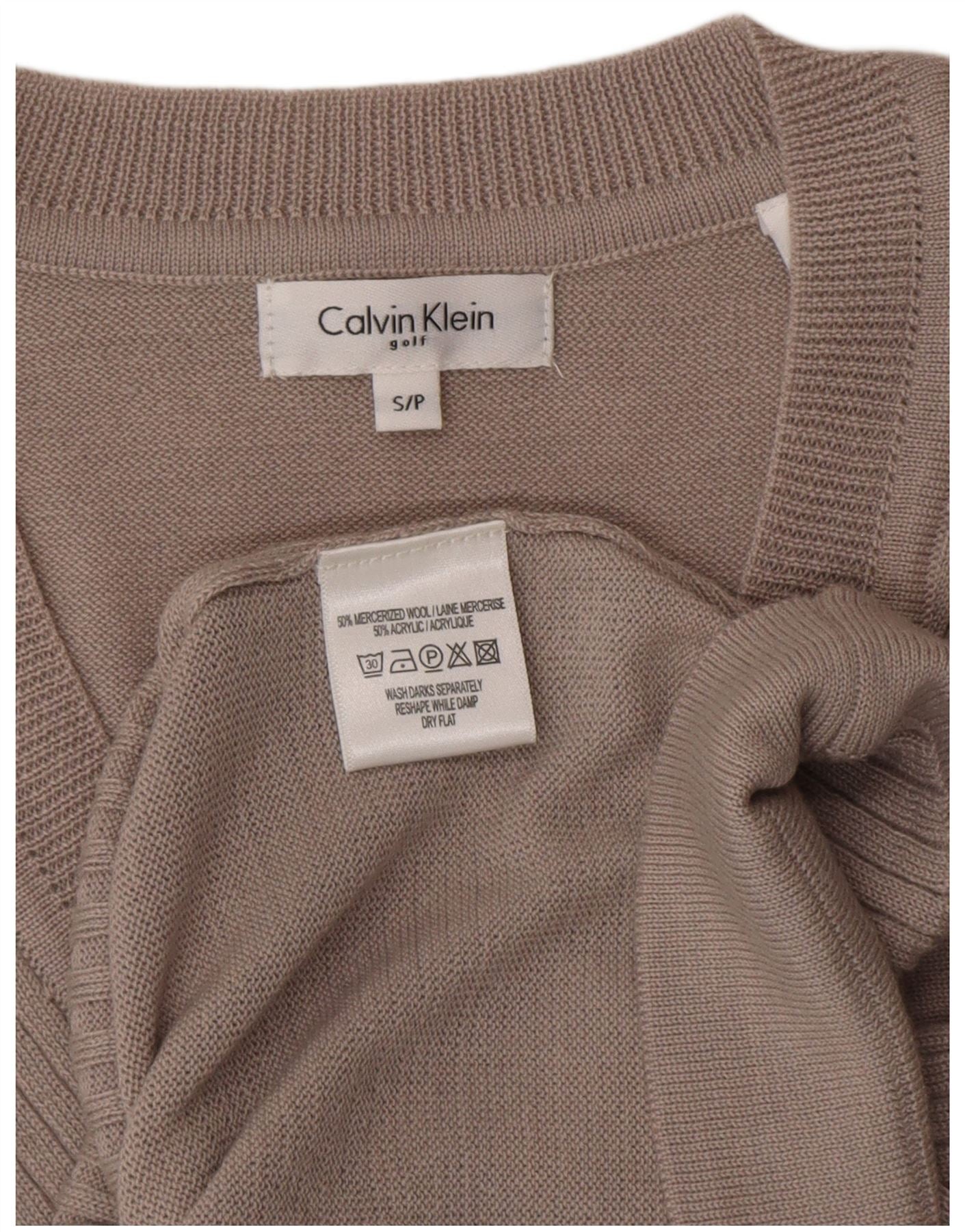 CALVIN KLEIN Damski sweter golfowy z dekoltem w kształcie litery V, UK 10, mały, beżowy, wełniany