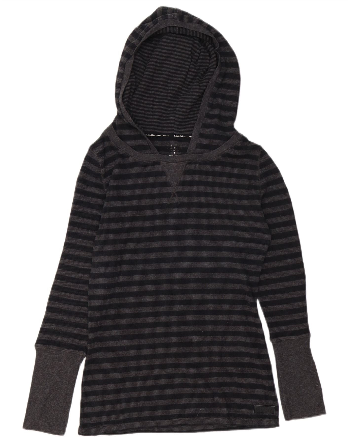 Damska koszulka z kapturem i długim rękawem Calvin Klein, UK 12, średnia, szara bawełna w paski