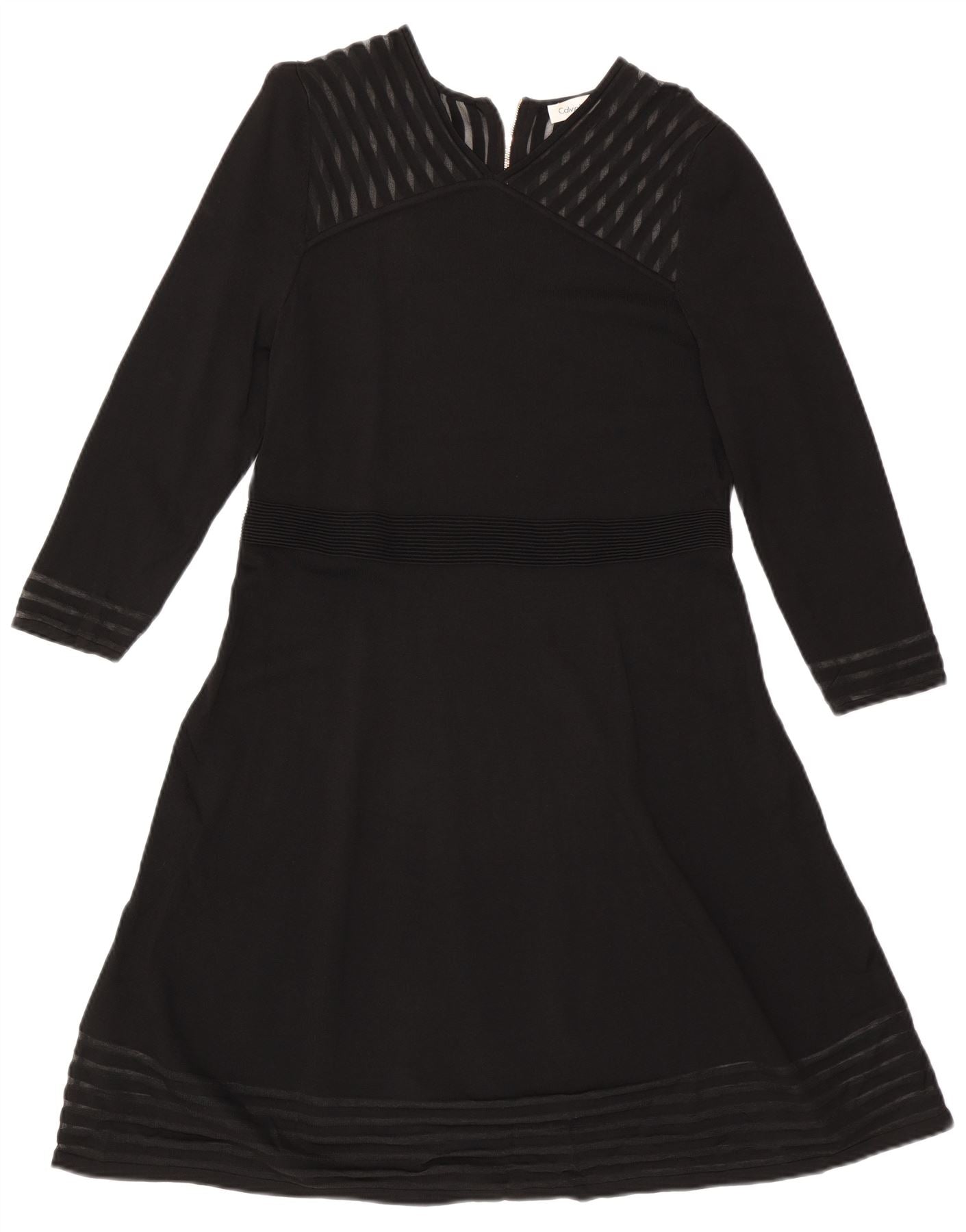 CALVIN KLEIN Damska sukienka trapezowa z długim rękawem UK 18 XL w czarne paski ze sztucznego jedwabiu
