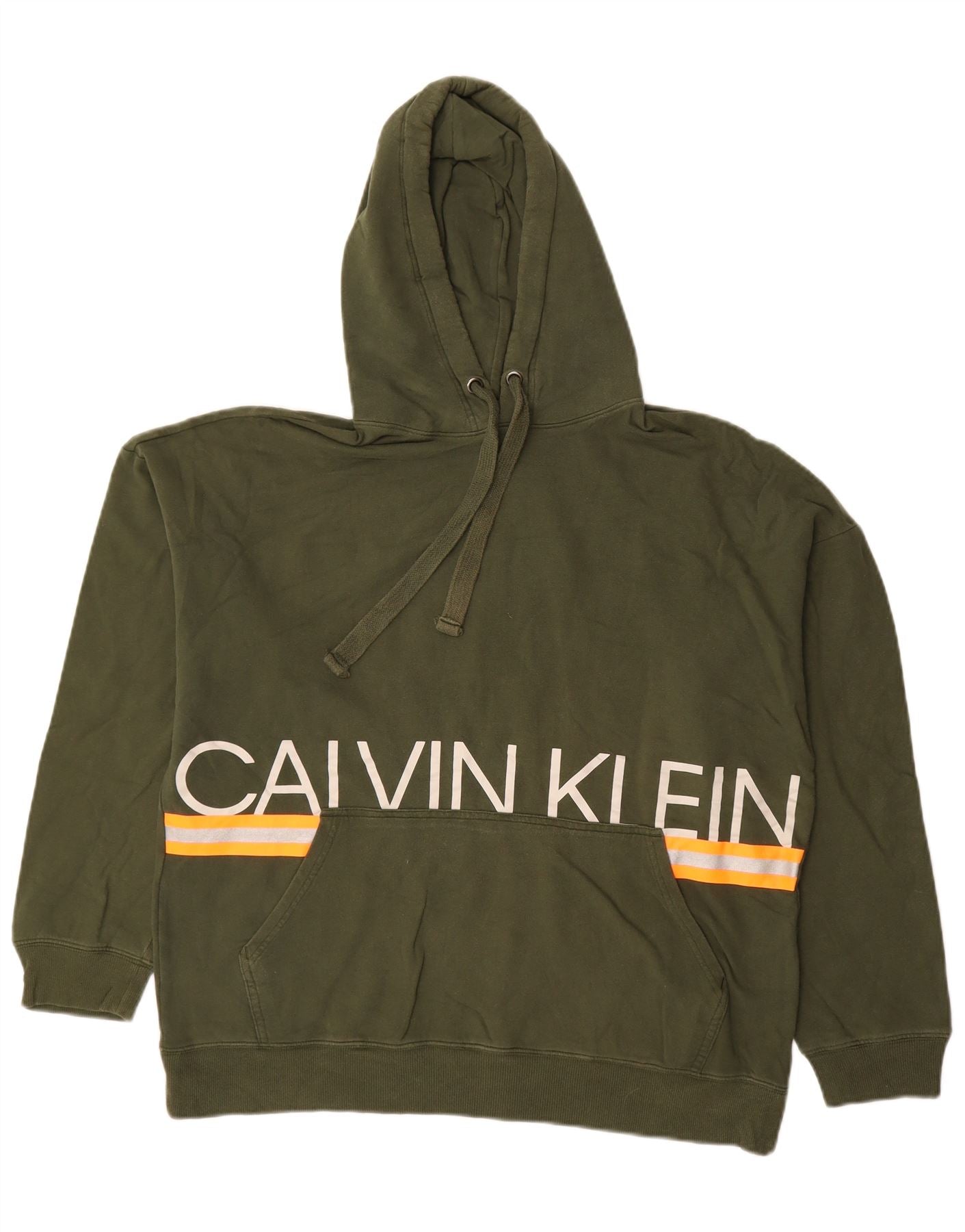CALVIN KLEIN Damski sweter oversize z kapturem i grafiką, UK 16, duży khaki