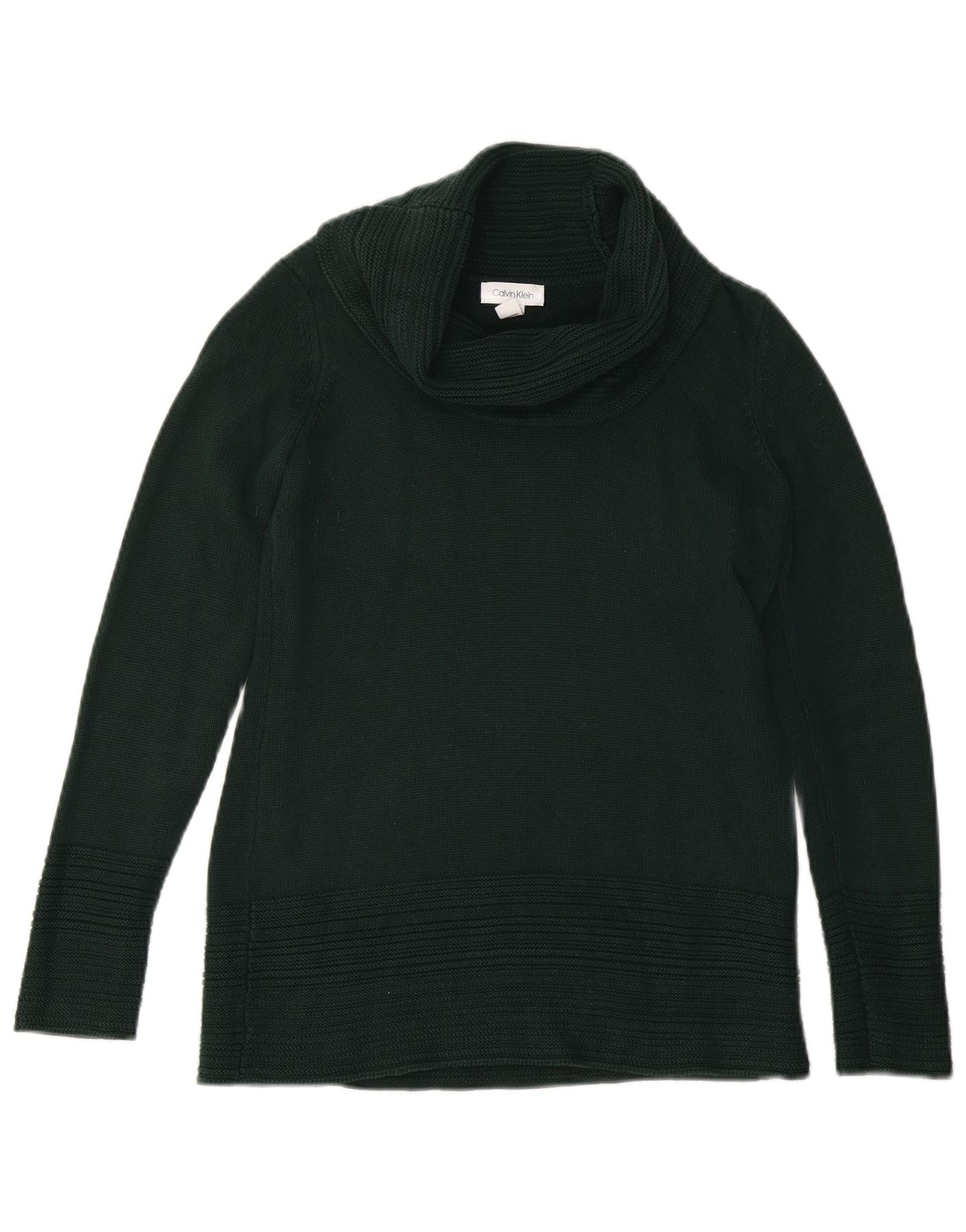 CALVIN KLEIN Damski sweter z golfem UK 10 Small, zielony, bawełniany