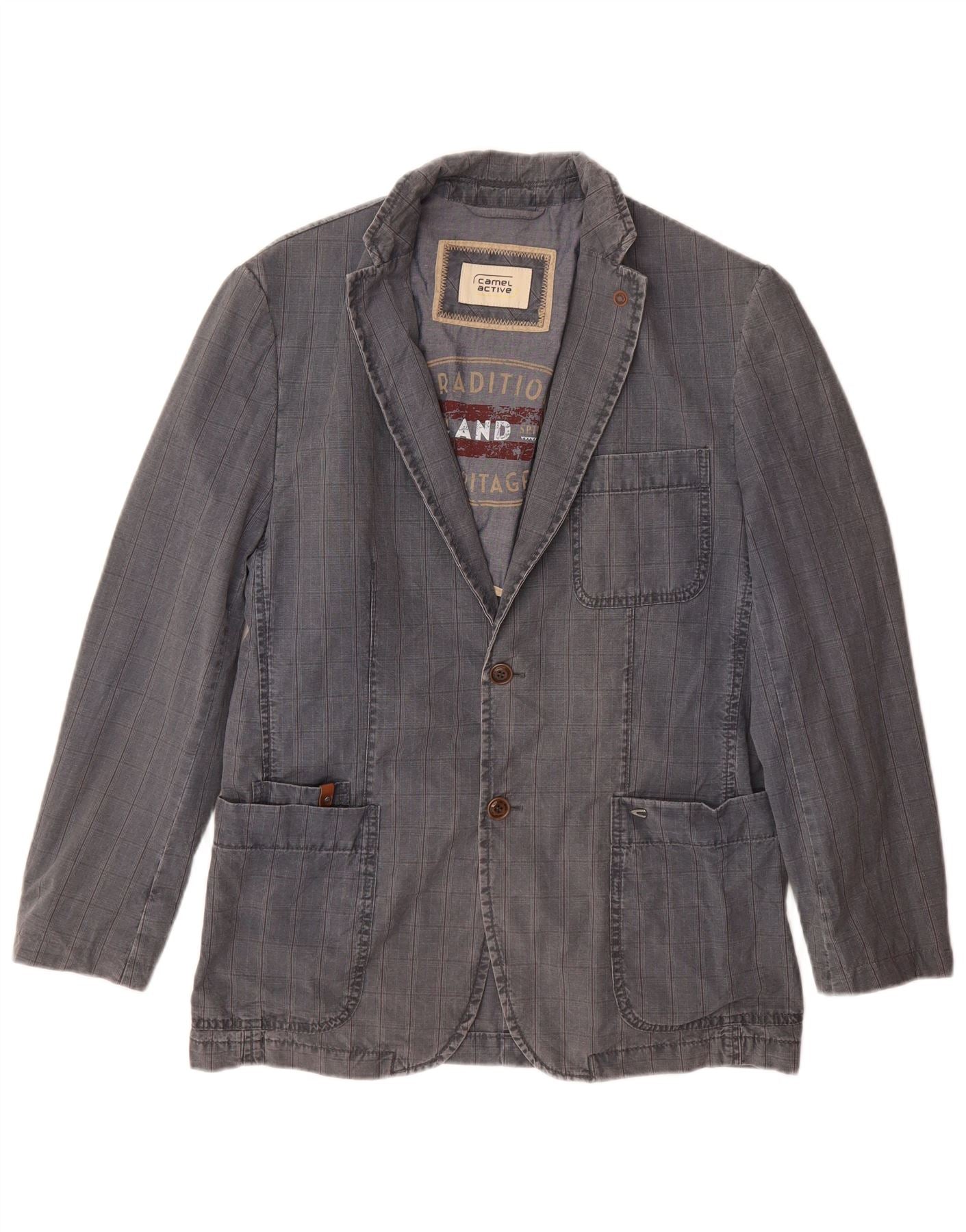 Męska marynarka CAMEL ACTIVE zapinana na 2 guziki IT 48, bawełniana w średnią niebieską kratkę