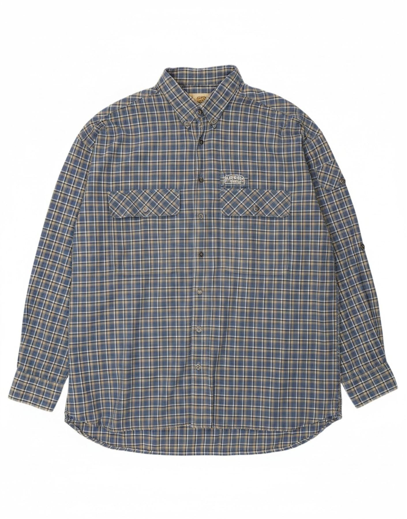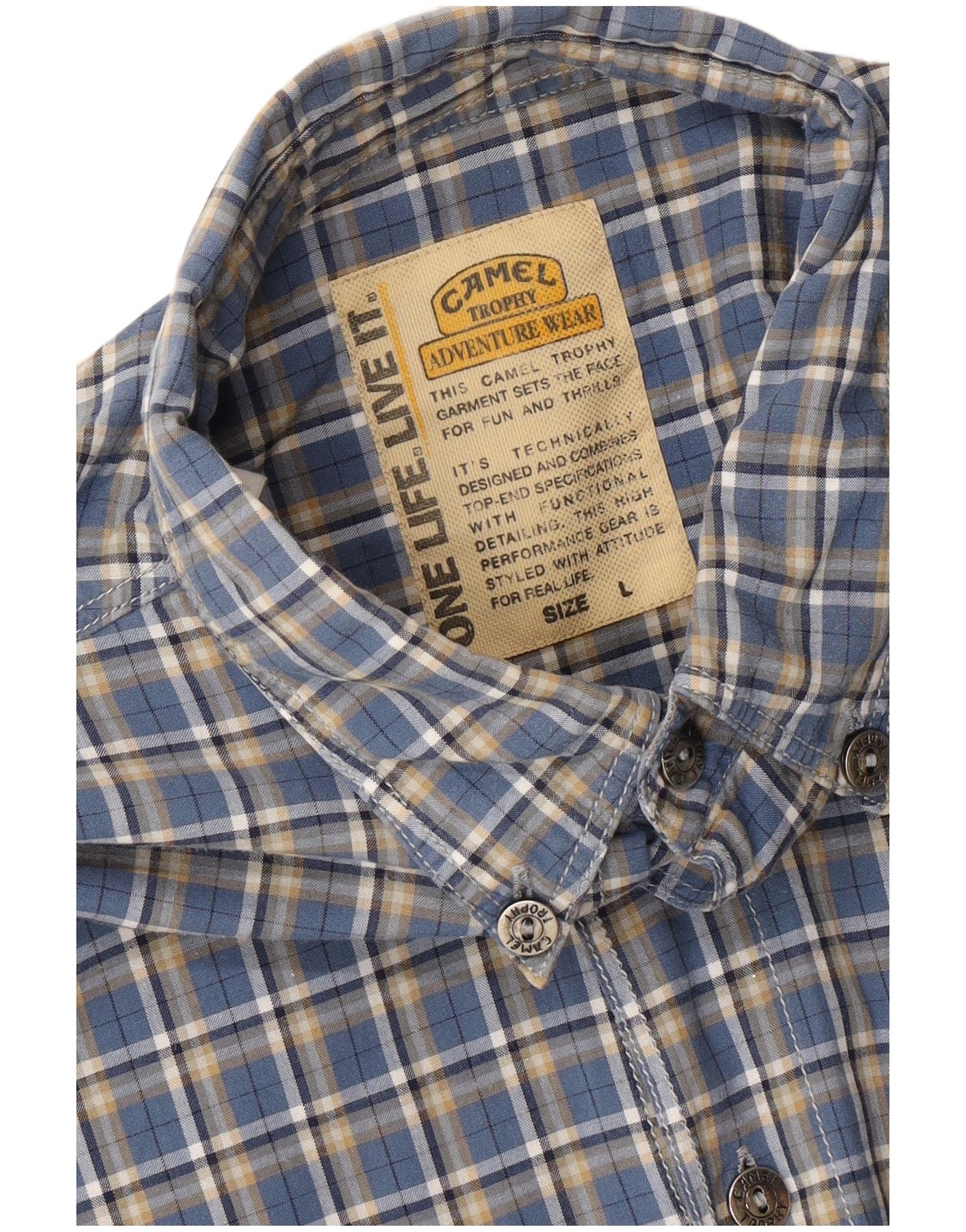 - AI Description: This Camel mens shirt features a classic blue plaid pattern woven in a soft, durable fabric. The collared neckline and full button-up front offer a timeless, smart casual look. Long sleeves with buttoned cuffs provide a neat finish. A regular fit ensures comfortable wear. Chest pockets add practical detail to the design.