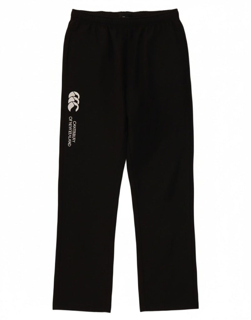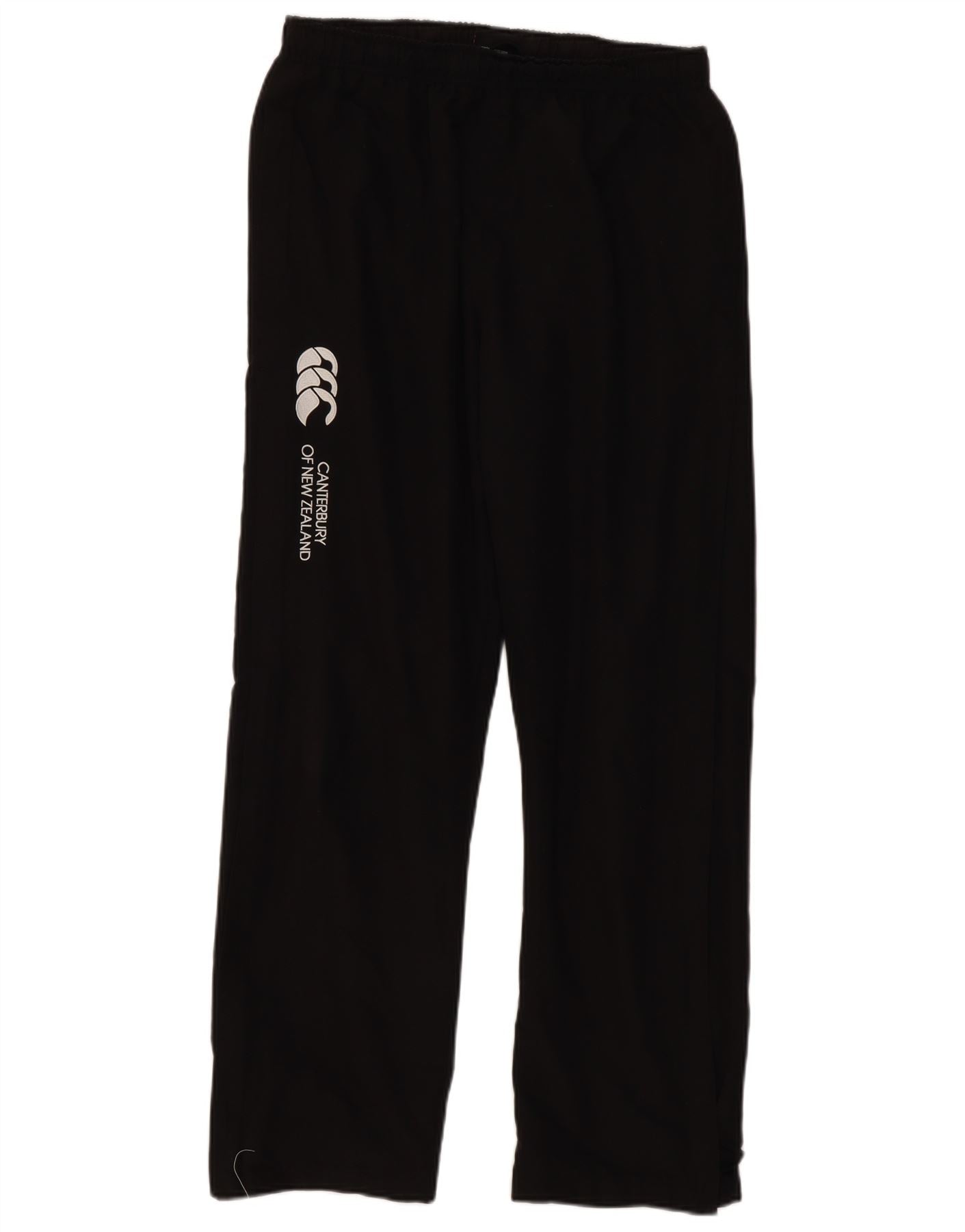 - AI Description: These Canterbury men's tracksuit trousers are crafted from woven fabric in black. The regular fit ensures comfort and ease of movement. An elastic waist with a drawstring closure provides an adjustable fit. These sports trousers feature practical pockets and are ideal for rugby or general activewear. The design is simple and functional.