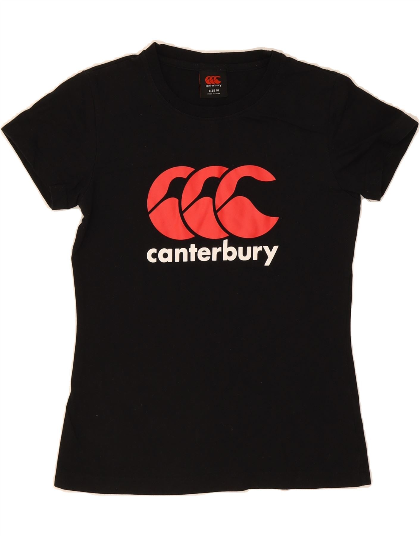 CANTERBURY Womens Graphic T-Shirt Top UK 10 Small Black Cotton