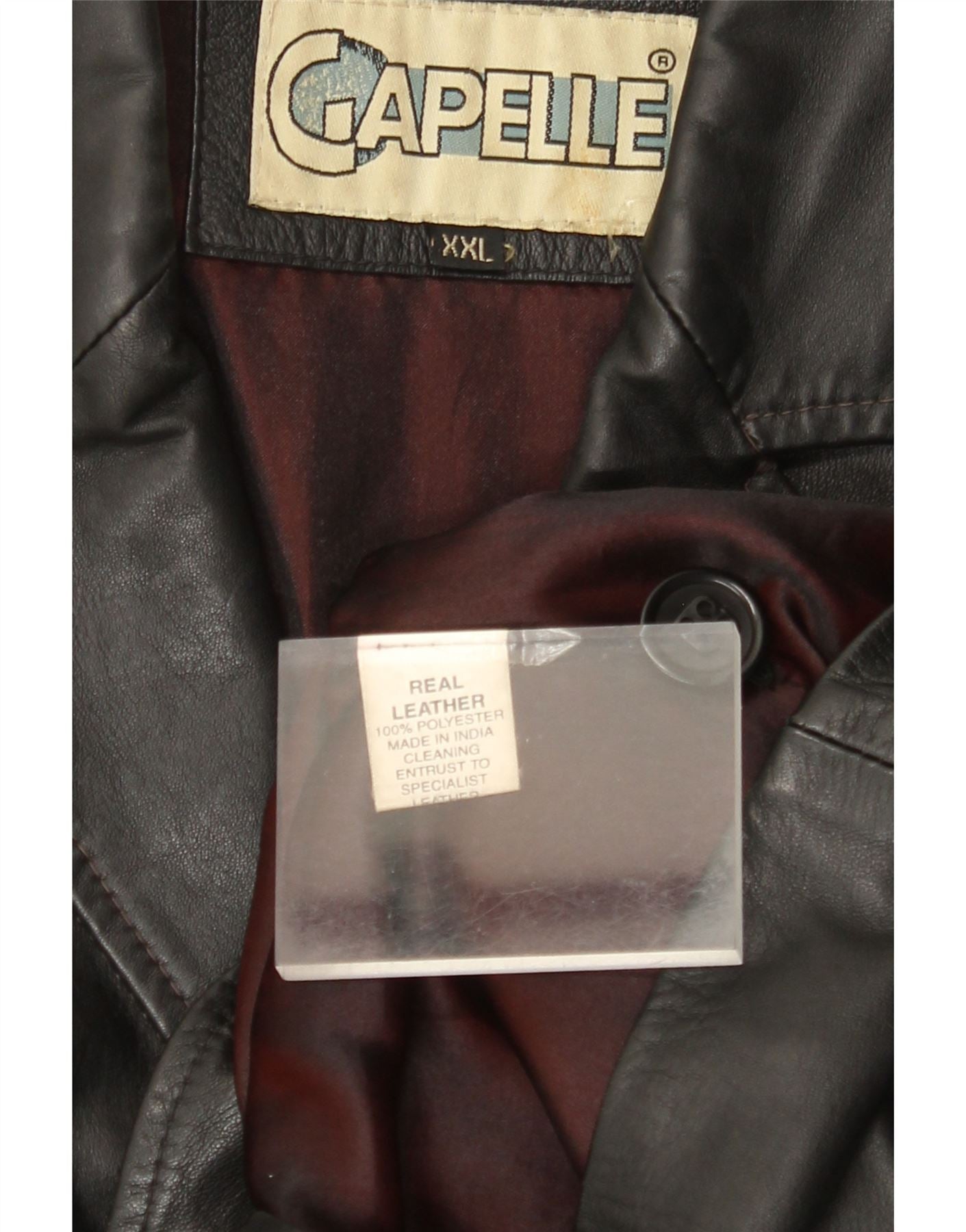 CAPELLE Męska skórzana marynarka zapinana na 4 guziki UK 44 2XL Czarna skóra