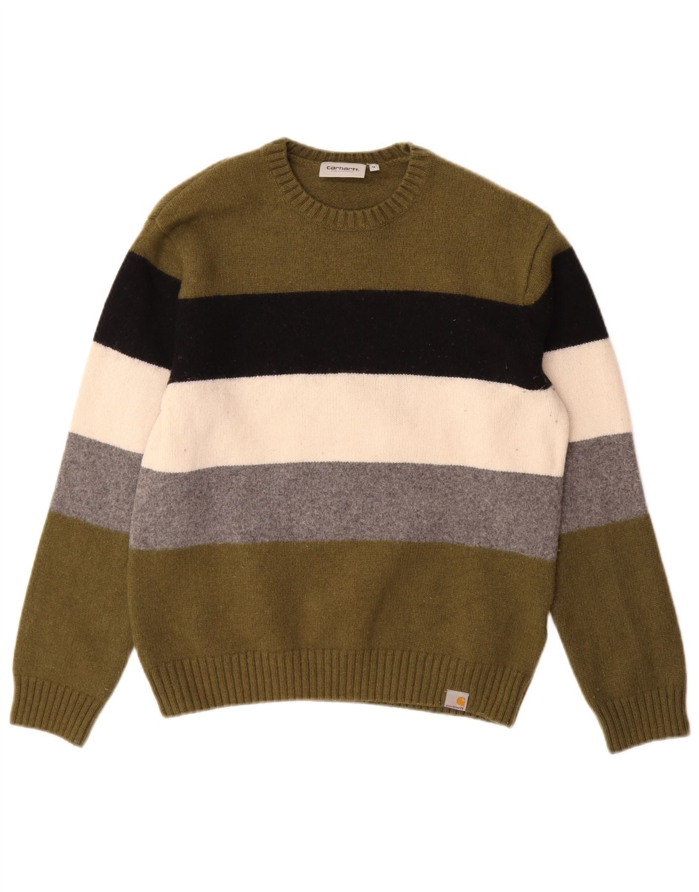 Home > Odzież vintage Carhartt > Męskie > Męski sweter CARHARTT z okrągłym dekoltem, średnia wełna owcza w kolorze khaki
