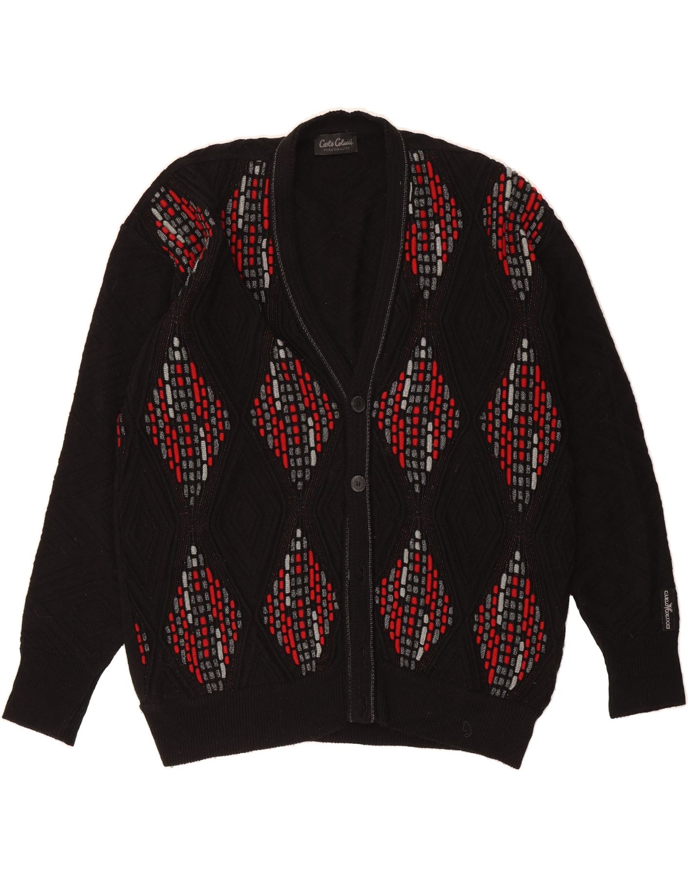 CARLO COLUCCI Mens Cardigan Sweater XL Black Argyle/Diamond