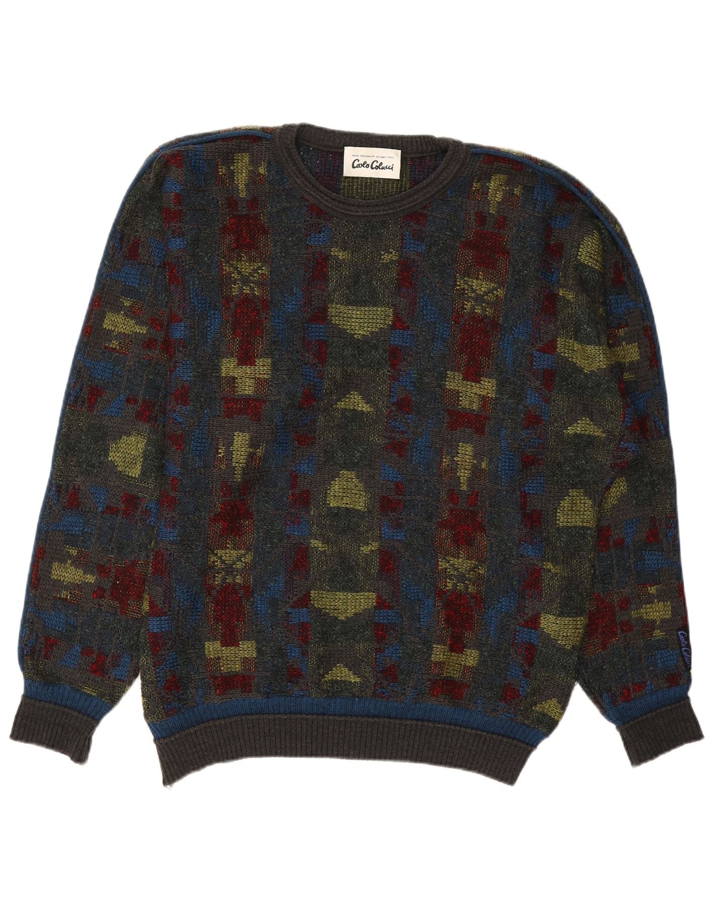 CARLO COLUCCI Mens Crew Neck Jumper Sweater IT 52 Large Multicoloured