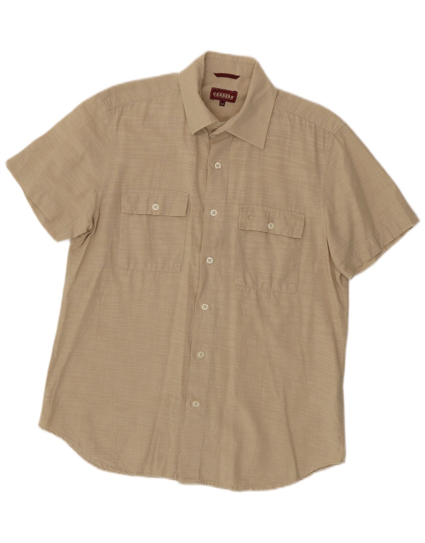 Home > Odzież Vintage Carrera > Męskie > Koszula męska z krótkim rękawem CARRERA, bawełniana w średnie beżowe prążki