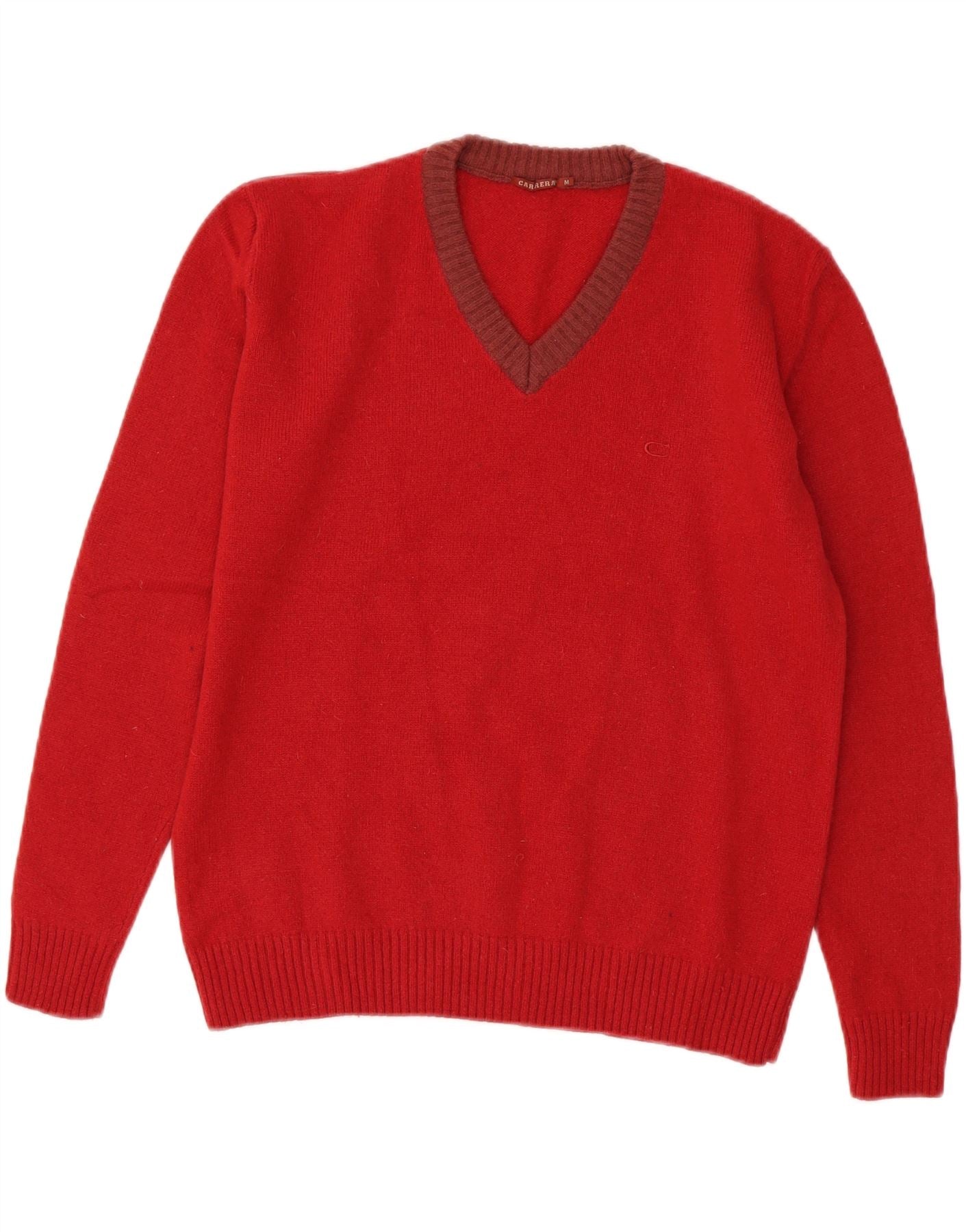Sweter damski CARRERA z dekoltem w kształcie litery V, UK 14, średnia czerwona wełna