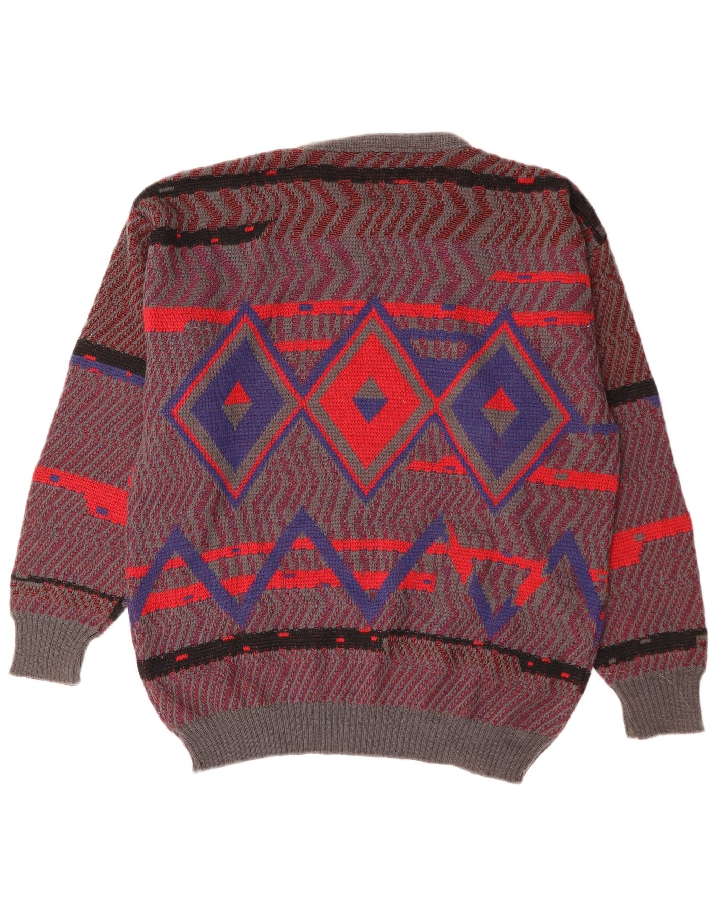 Sweter męski CASTELLO IT 52, duży, czerwony, argyle/diamentowa wełna
