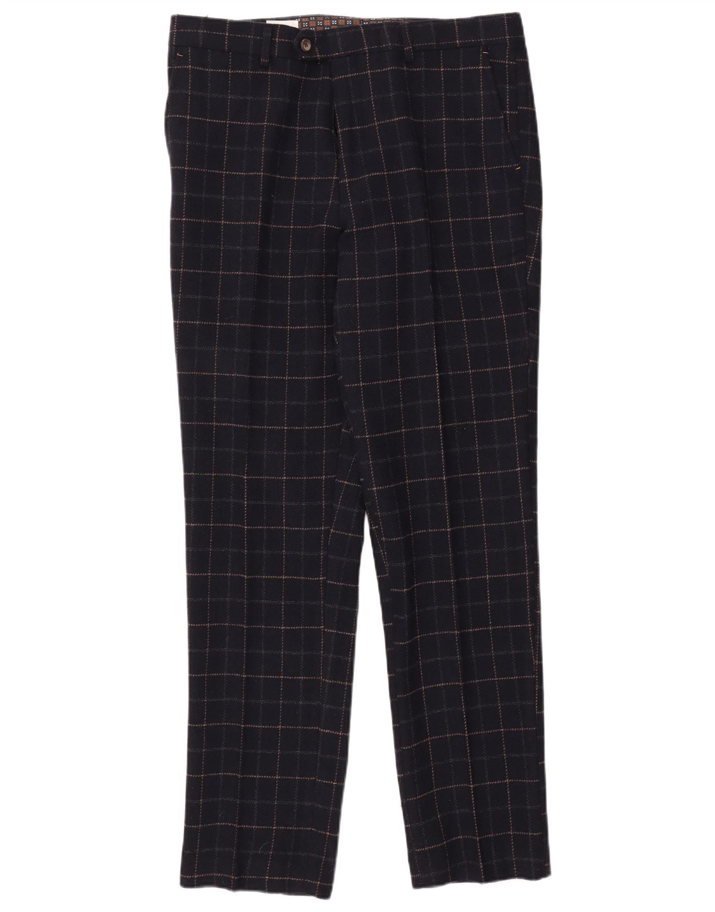 Cavani Męski 2-częściowy garnitur zapinany na 2 guziki UK 40 Large W38 L32 Granatowa kratka