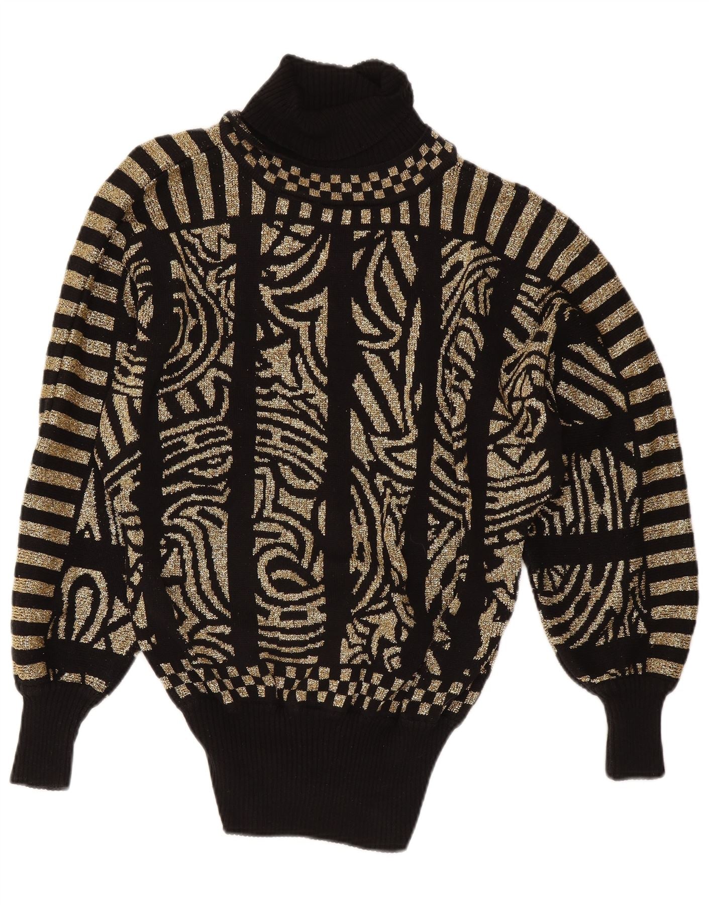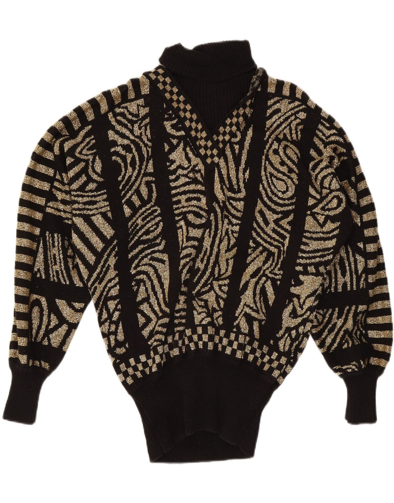 CEDARS Womens Oversized Roll Neck Jumper Sweater UK 16 Large Black Paisley
