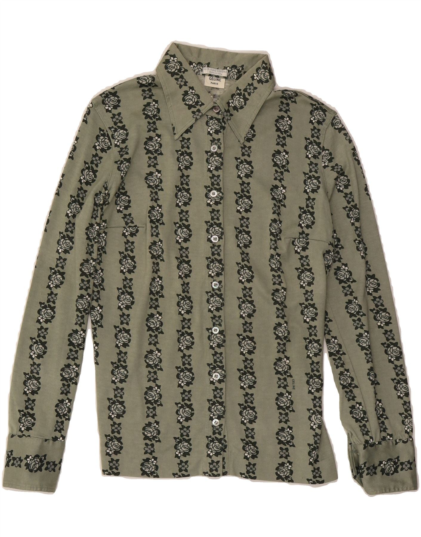 CELINE Womens Shirt IT 42 Medium Khaki Floral Cotton Designer