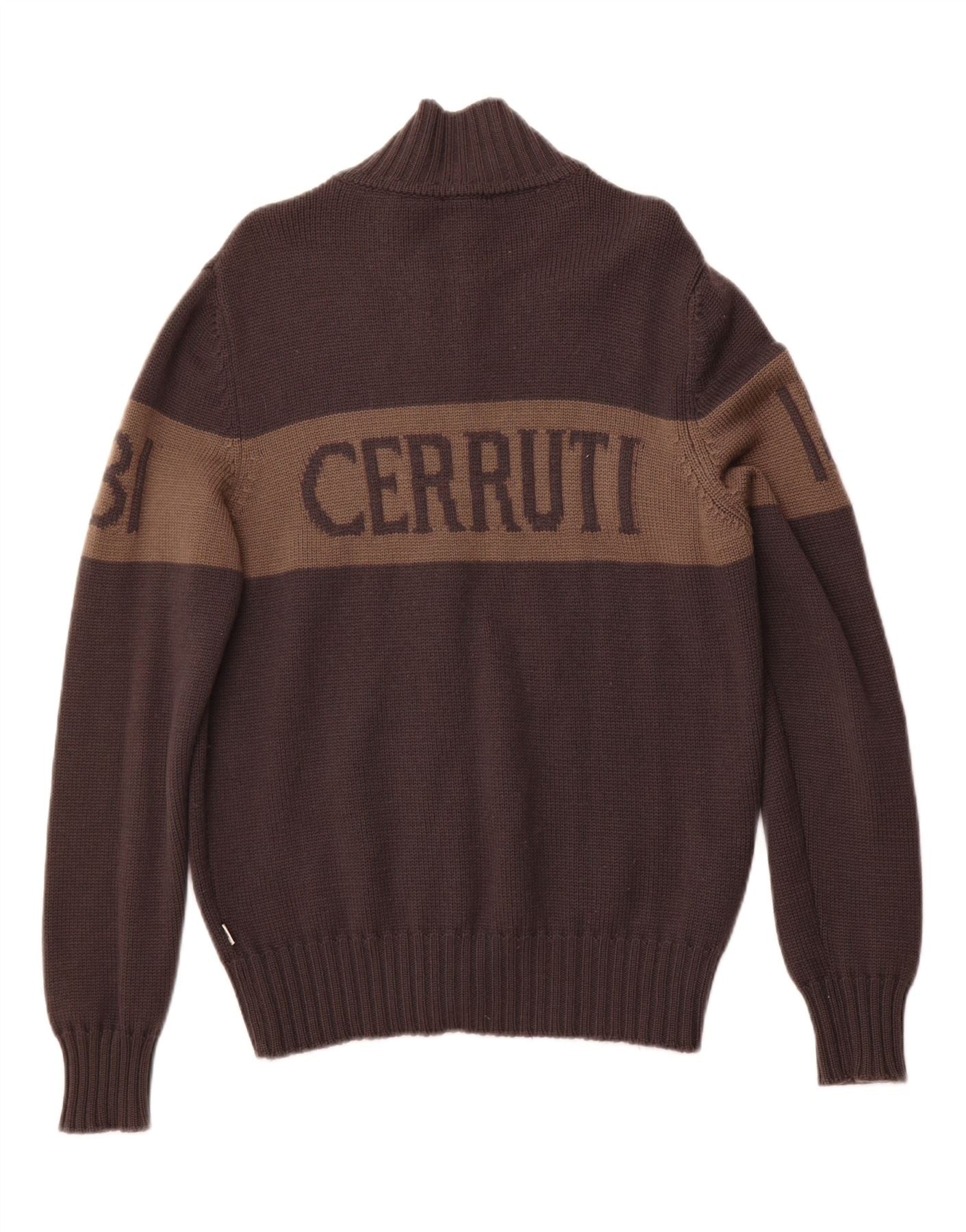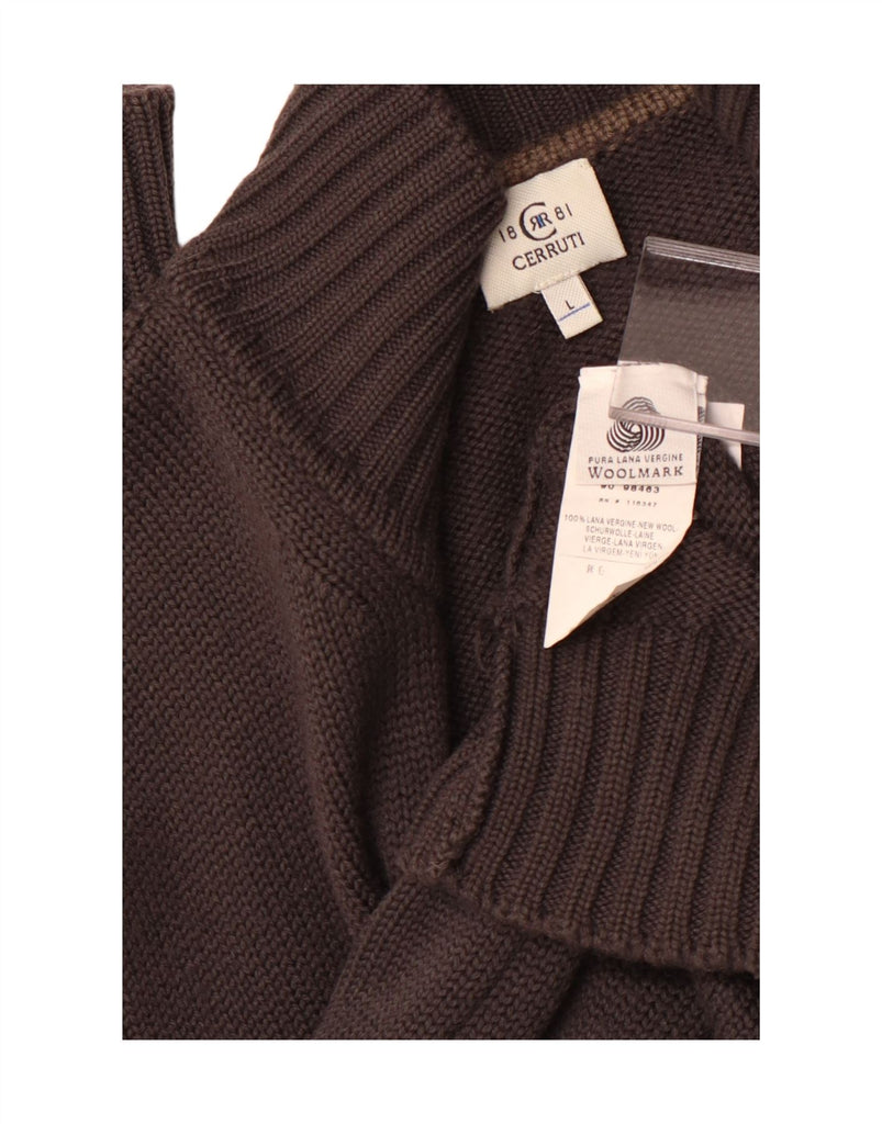 CERRUTI 1881 Męski sweter z grafiką, duży, szary, z blokami kolorów, nowa wełna
