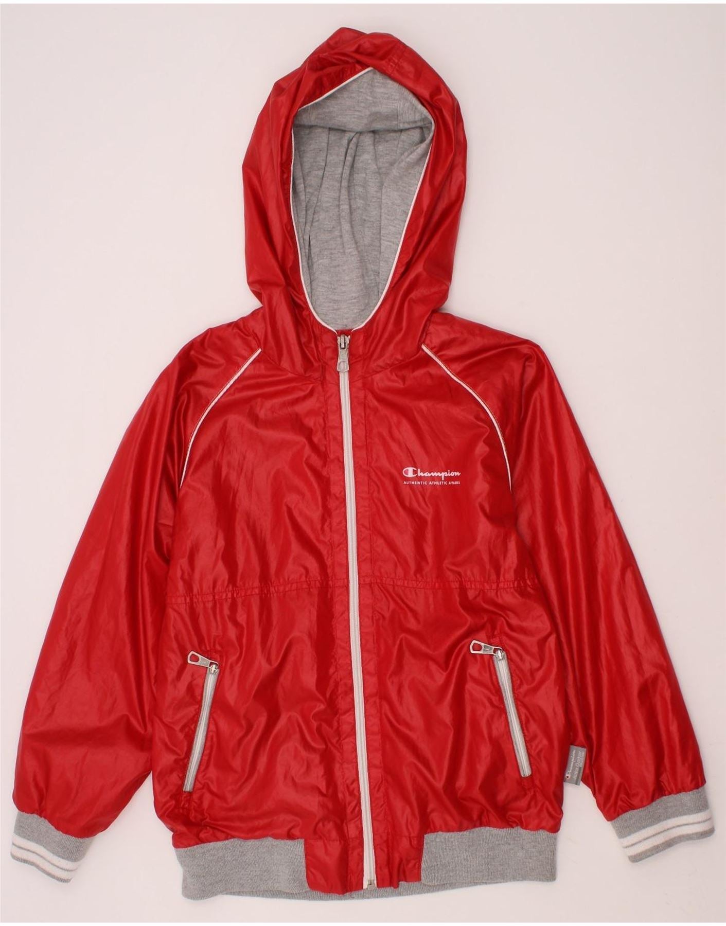 CHAMPION Girls Hooded Windbreaker Jacket 7-8 Years Small Red Cotton