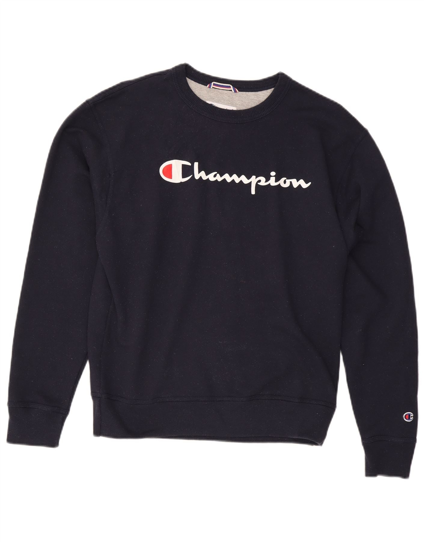 CHAMPION Mens Graphic Sweatshirt Jumper Medium Navy Blue Cotton