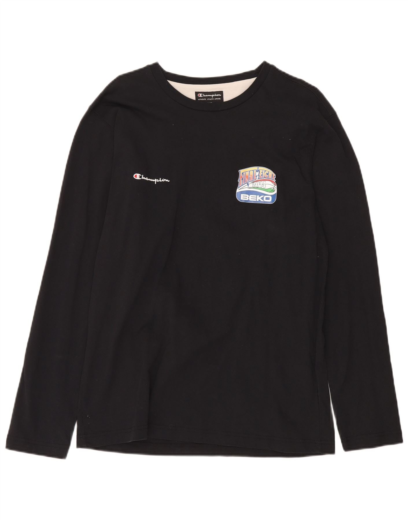 Męski top graficzny CHAMPION z długim rękawem, duży, czarny, bawełniany