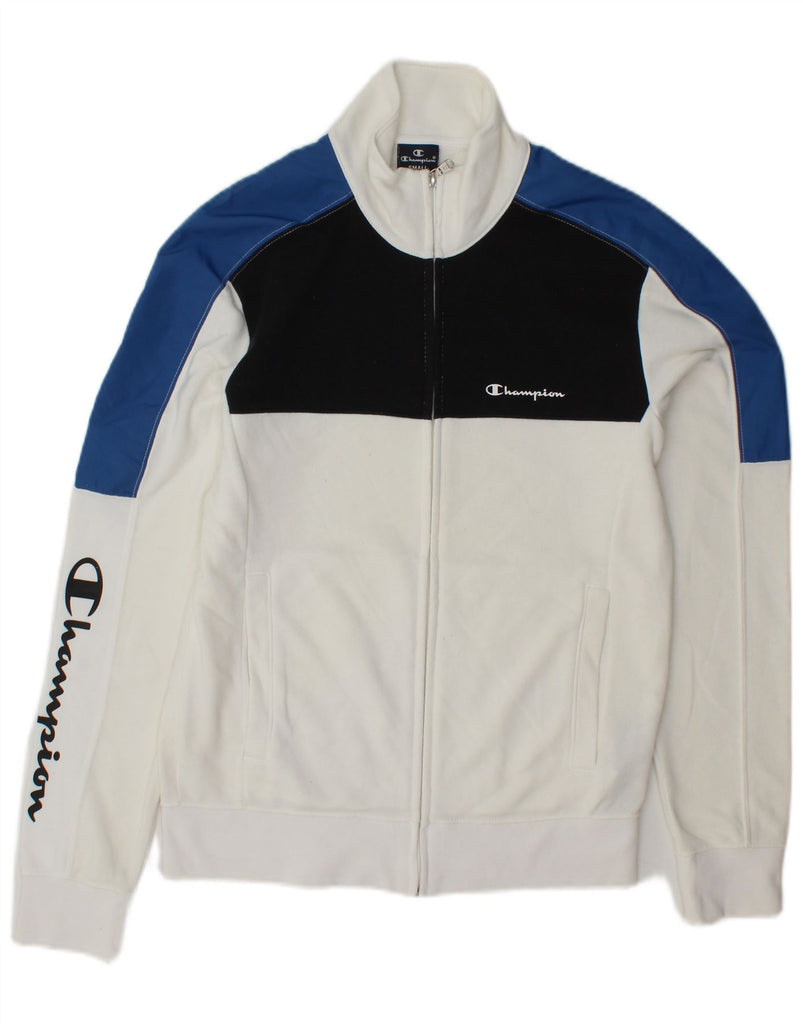 Męska kurtka dresowa CHAMPION z grafiką, mała, biała, bawełniana w bloki kolorów