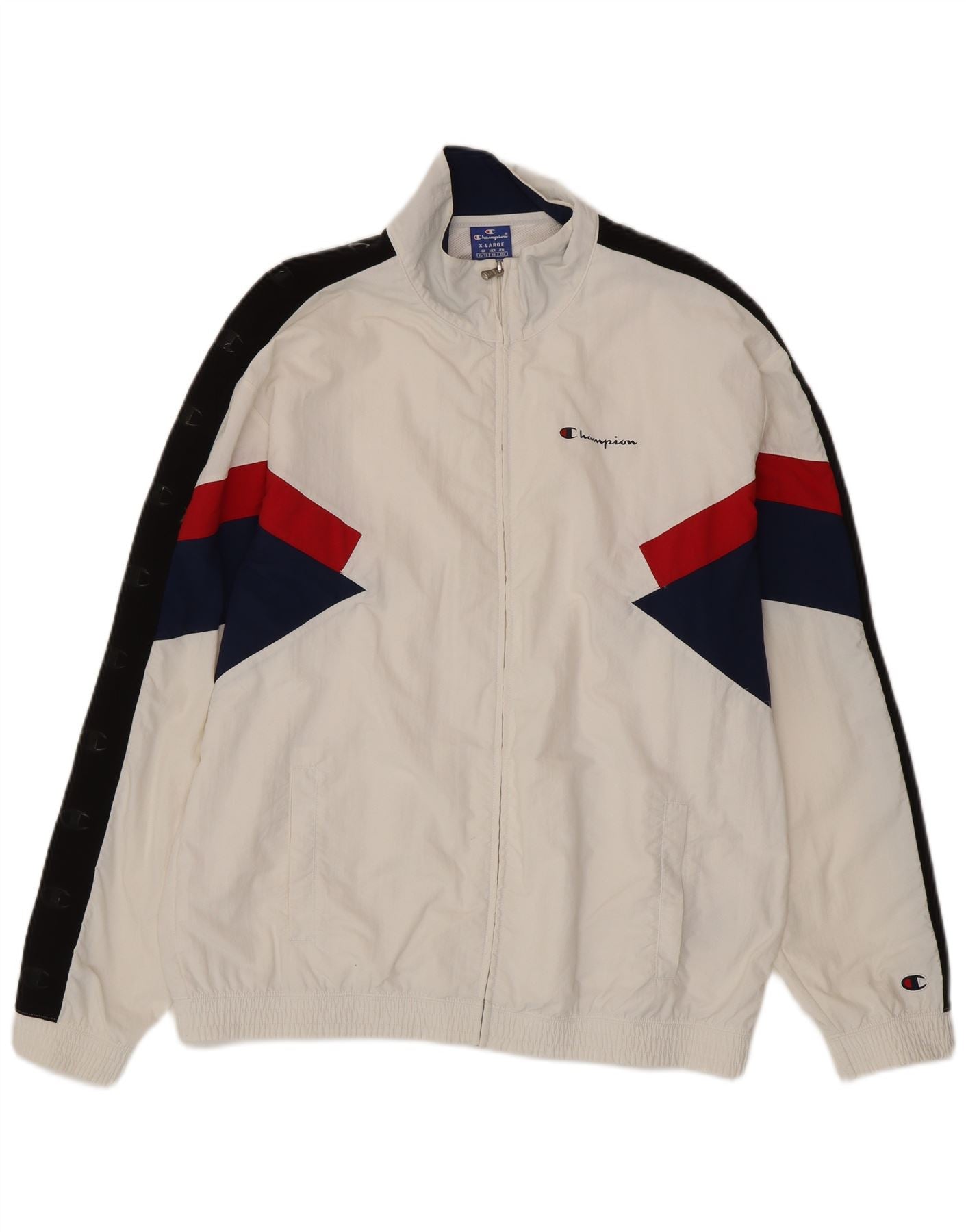 Męska kurtka dresowa CHAMPION z grafiką XL, biały poliamid z blokami kolorów