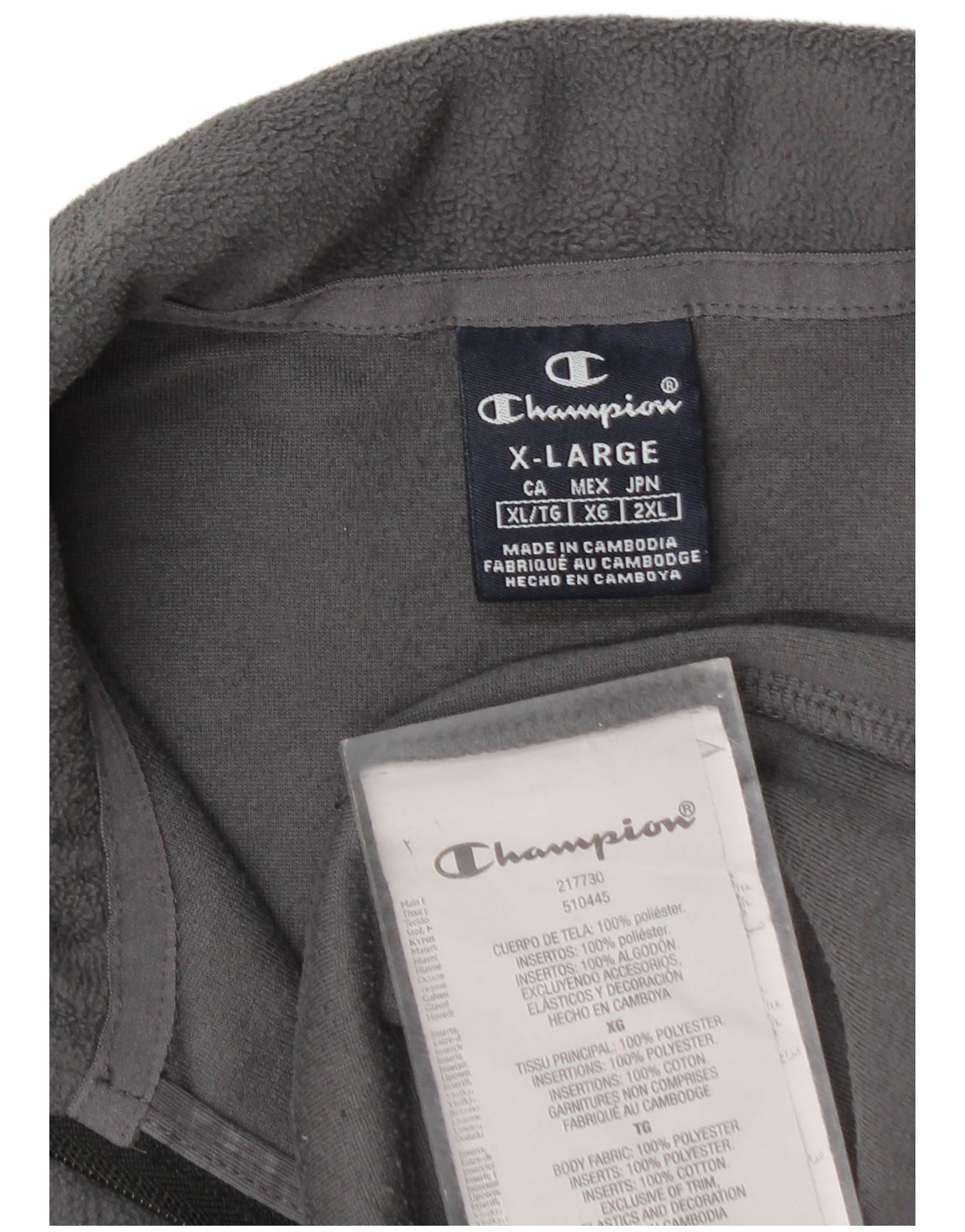 CHAMPION Mens Graphic Zip Neck Fleece Jumper XL Grey Colourblock Polyester