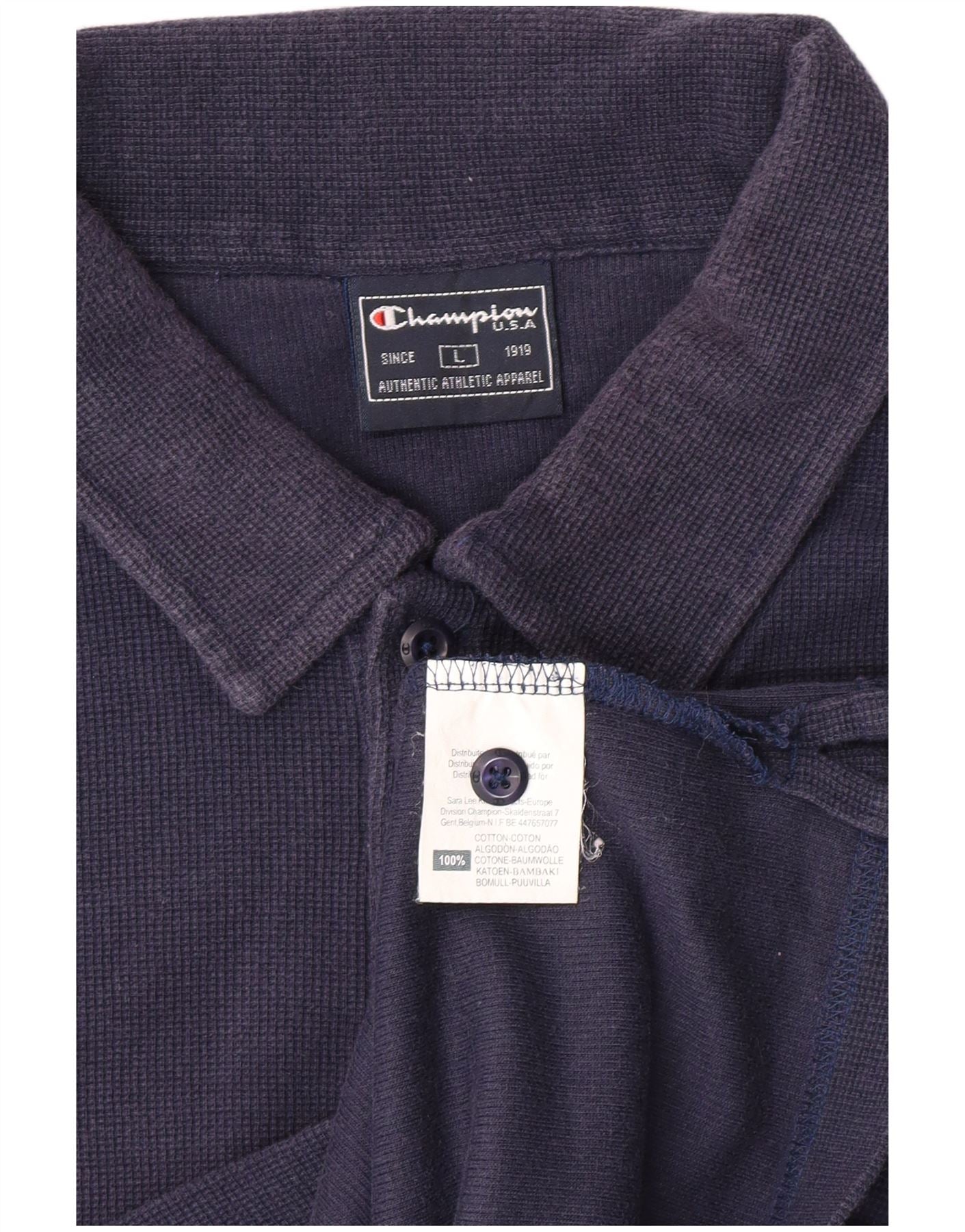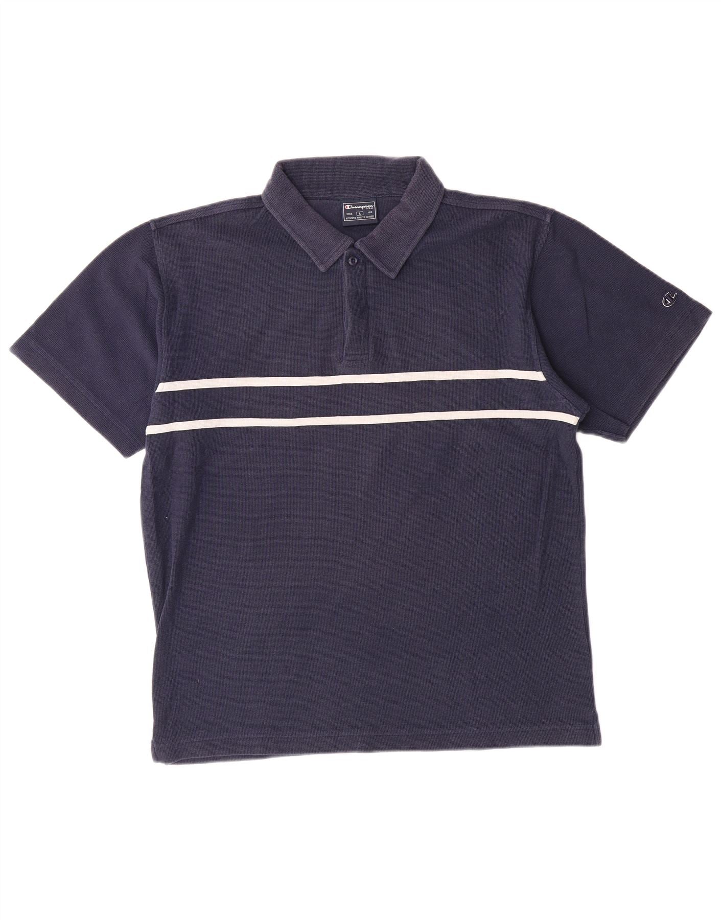 CHAMPION Mens Polo Shirt Large Navy Blue Striped Cotton