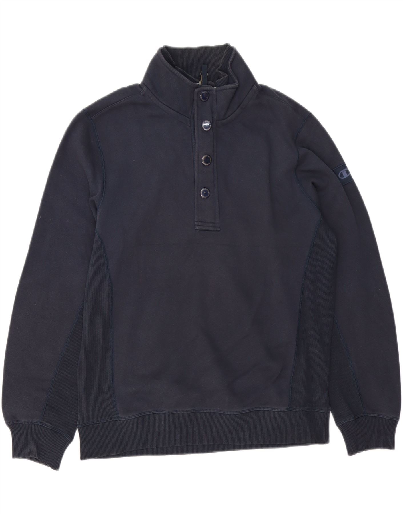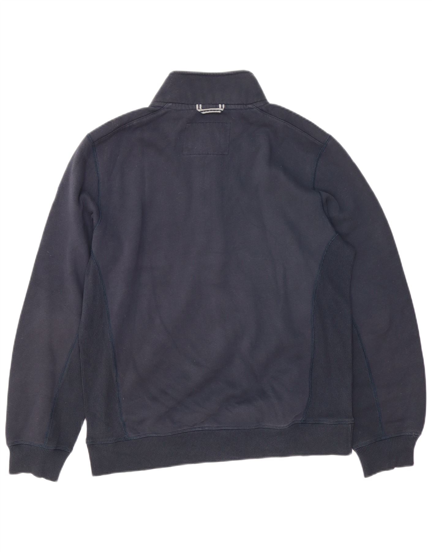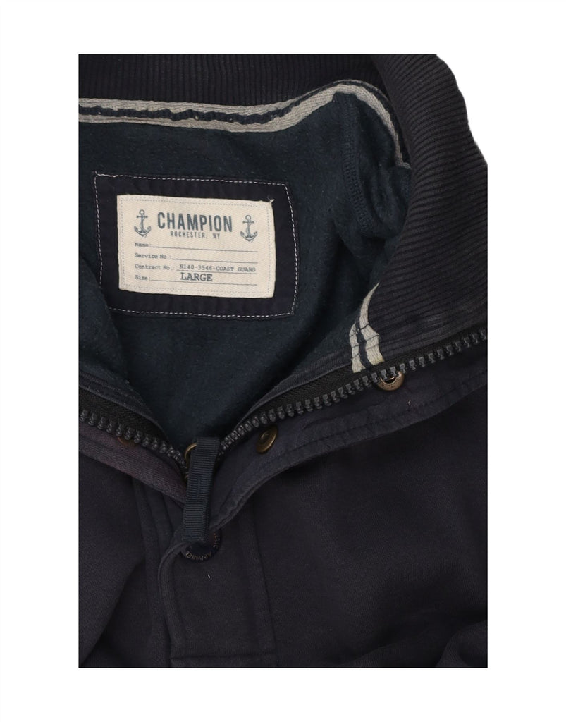 CHAMPION Mens Zip Neck Sweatshirt Jumper Large Navy Blue Cotton