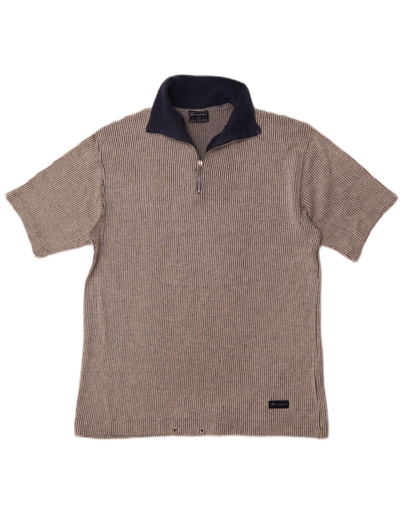 Home > Odzież mistrzowska w stylu vintage > Męskie > Koszulki > Męski T-shirt CHAMPION z zamkiem błyskawicznym, duży, szary, bawełniany w prążki