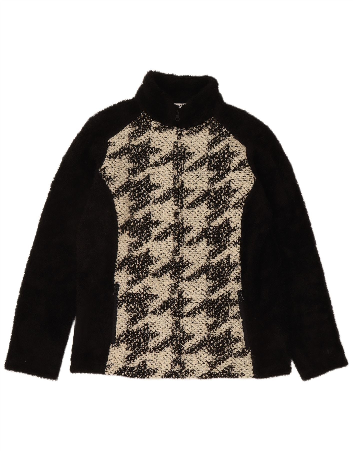 CHAMPION Womens Fleece Jacket UK 16 Large Black Houndstooth Polyester
