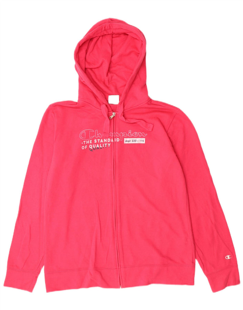 CHAMPION Womens Graphic Zip Hoodie Sweater UK 18 XL Pink Cotton