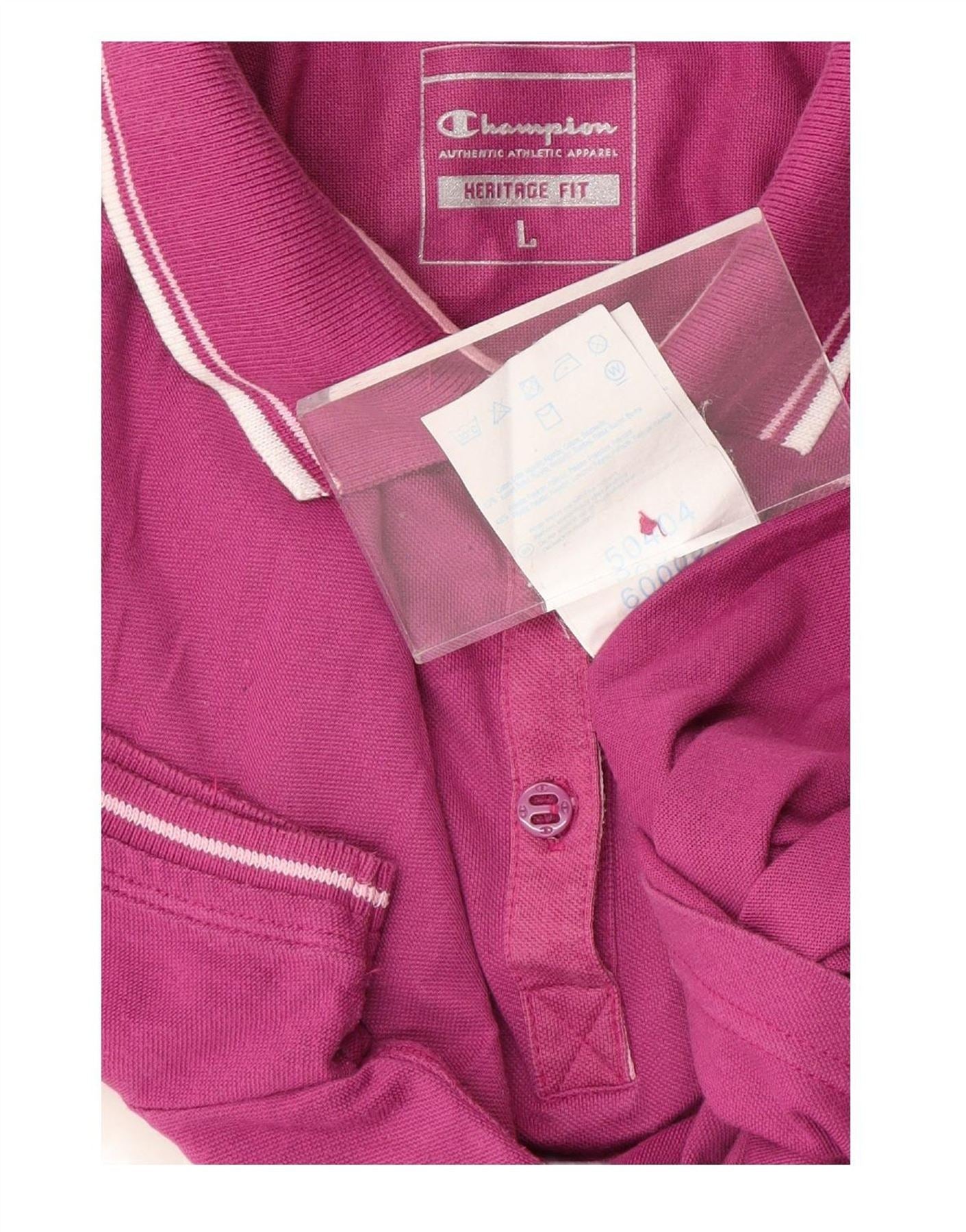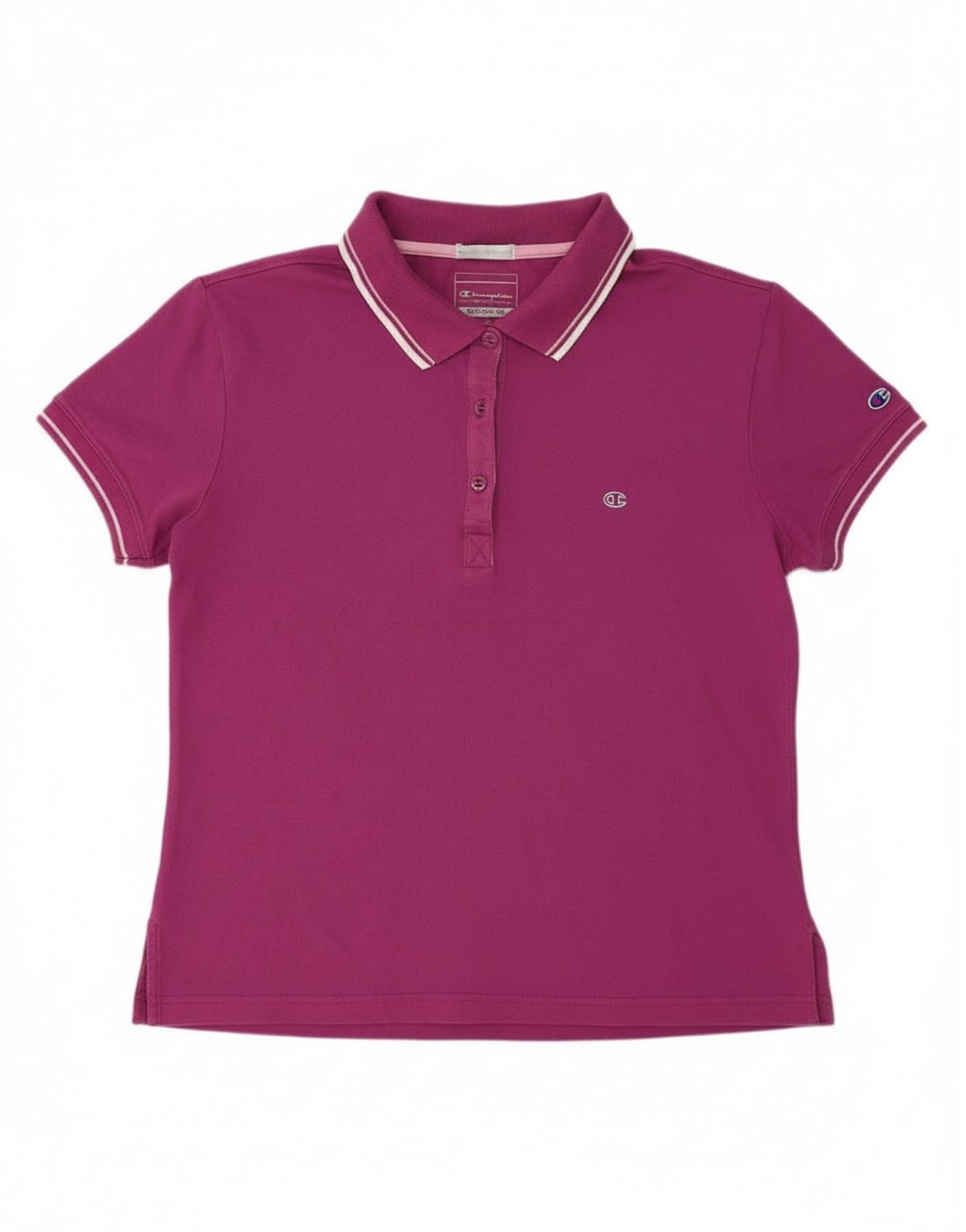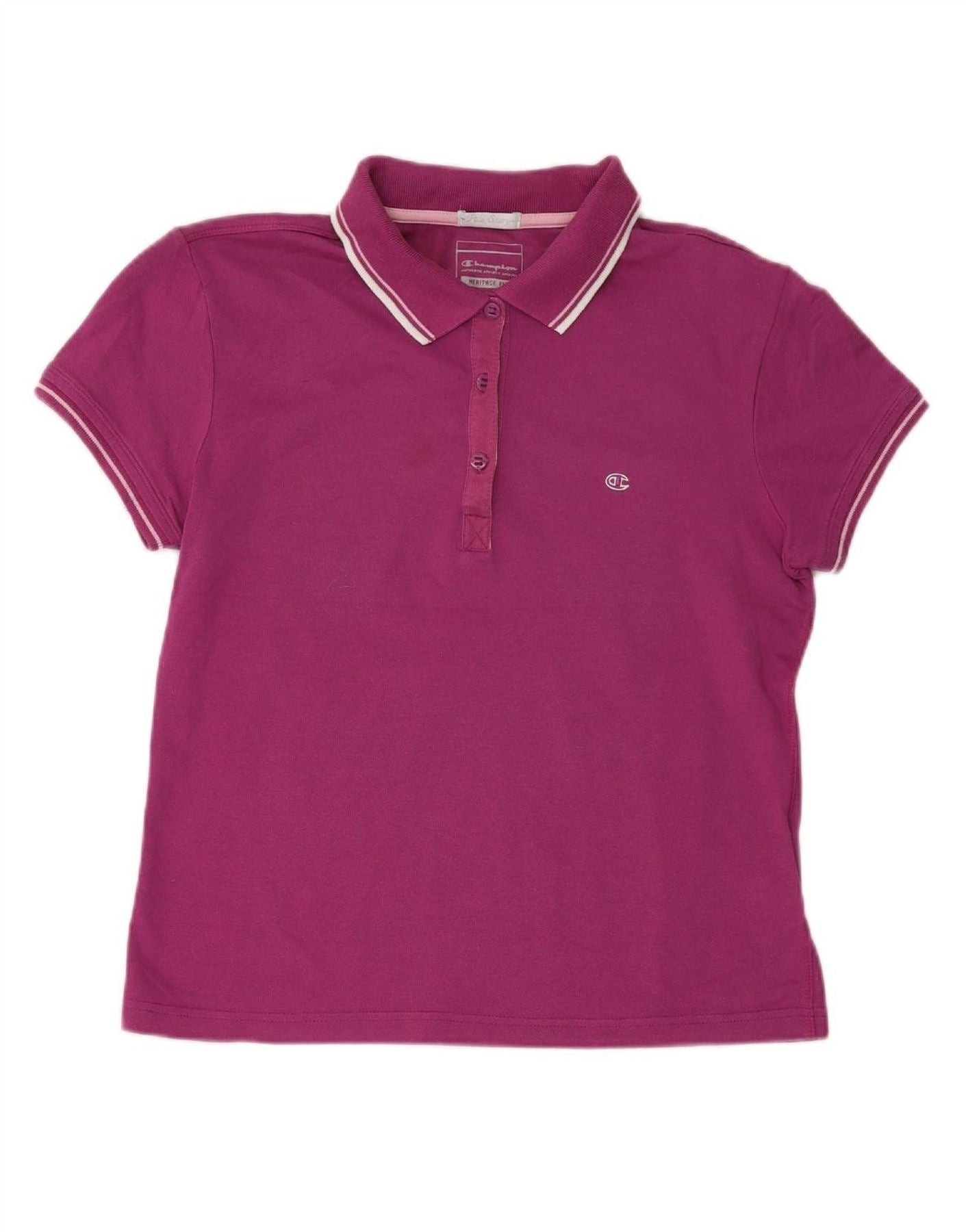 CHAMPION Womens Heritage Fit Polo Shirt UK 14 Large Purple Cotton