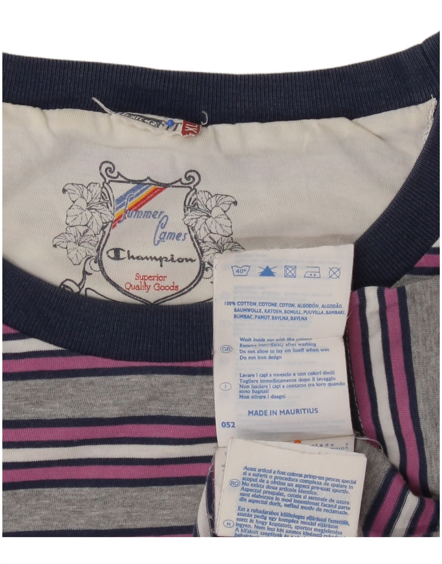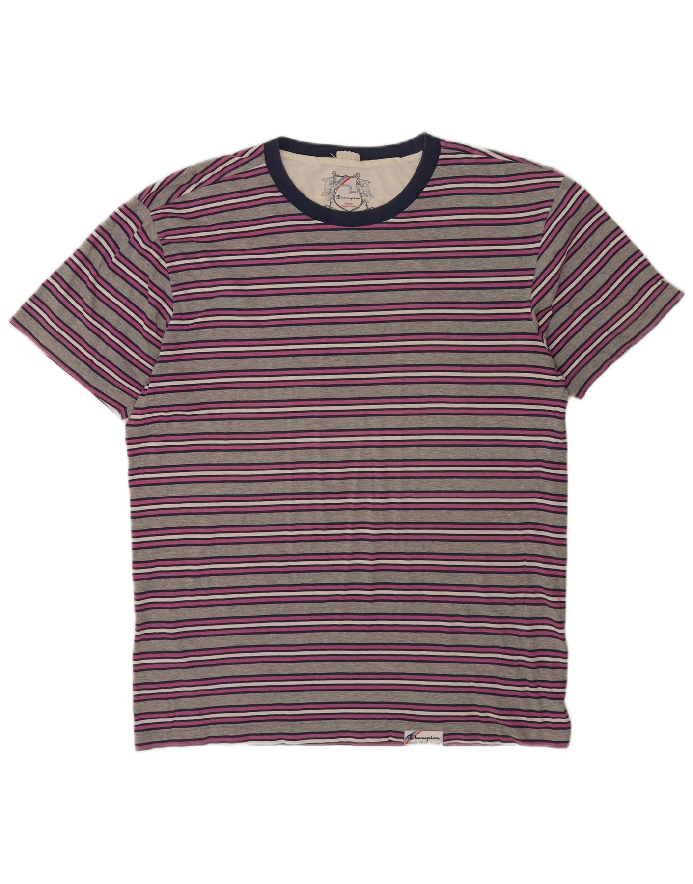 CHAMPION Womens T-Shirt Top UK 18 XL Multicoloured Striped Cotton