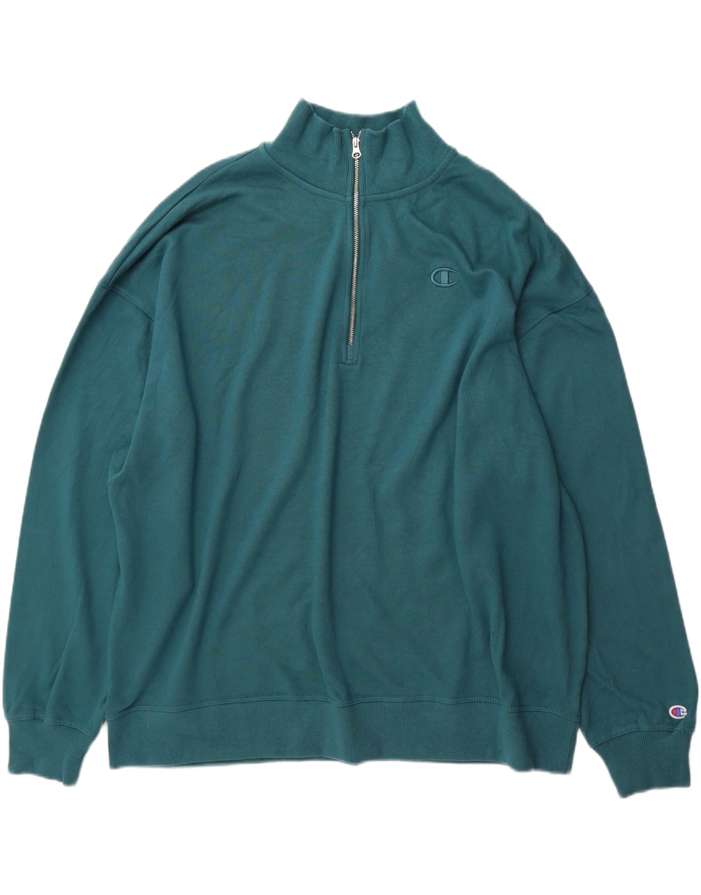 CHAMPION Womens Zip Neck Sweatshirt Jumper UK 20 2XL Green Cotton