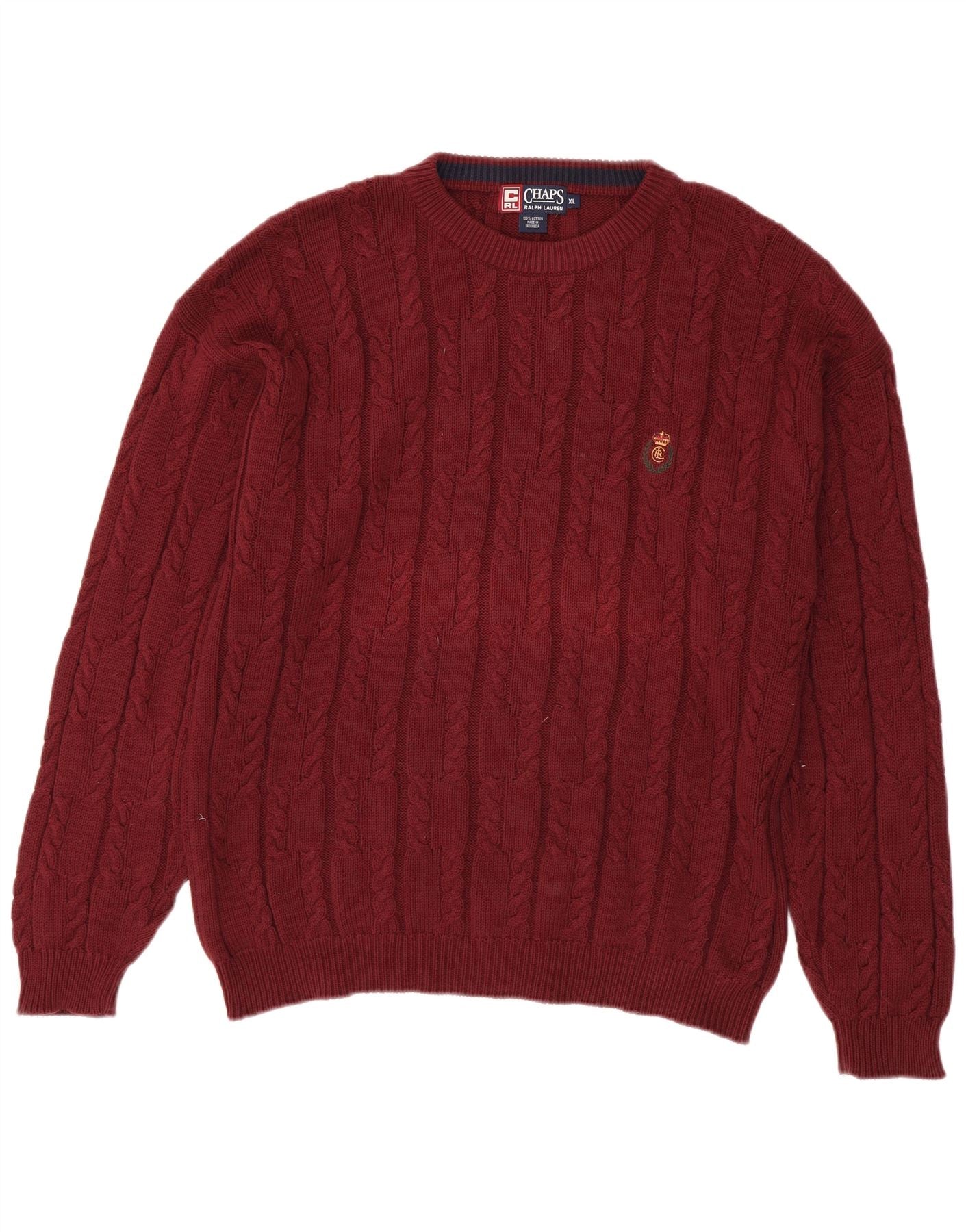CHAPS RALPH LAUREN Męski sweter z okrągłym dekoltem XL, bordowa bawełna