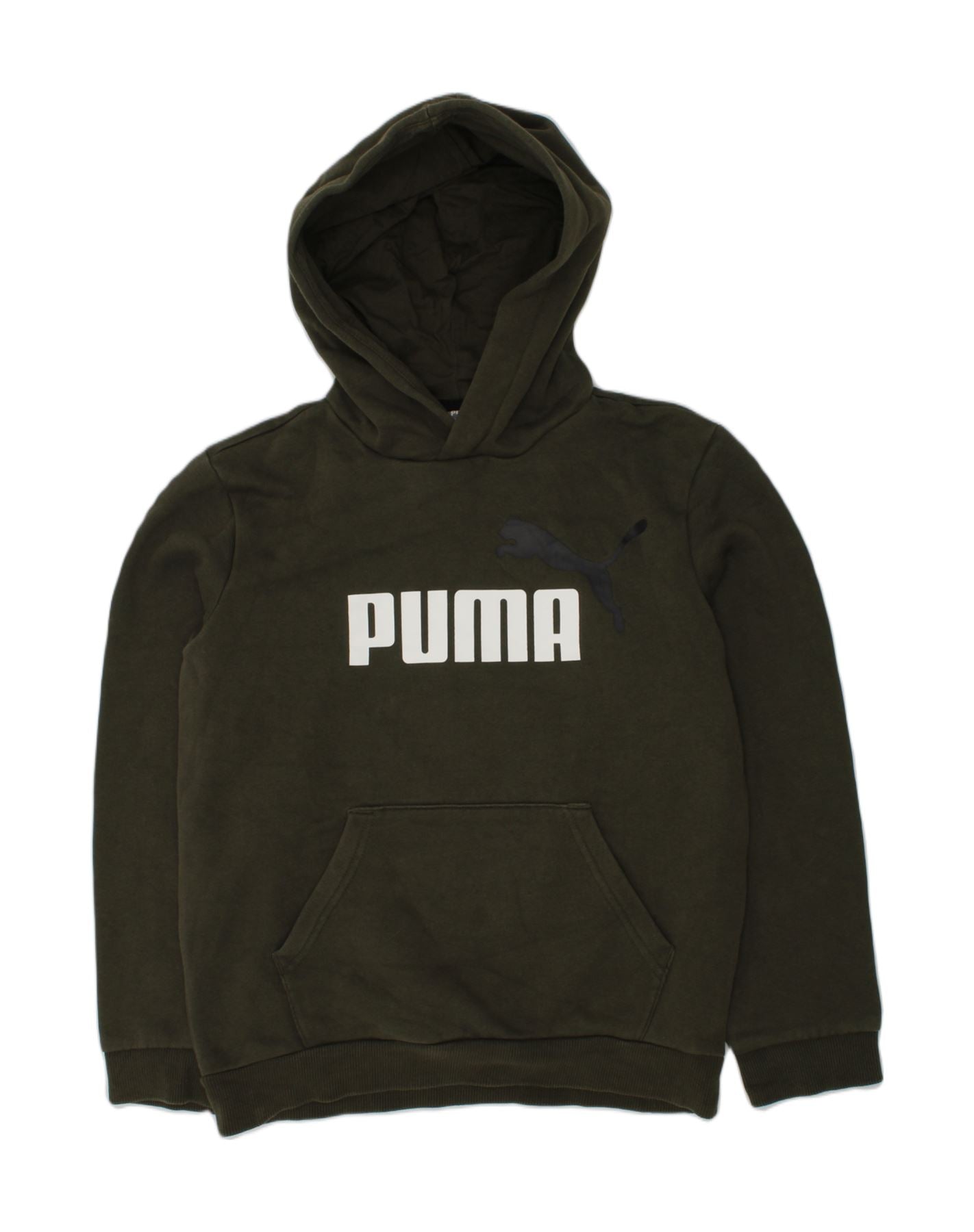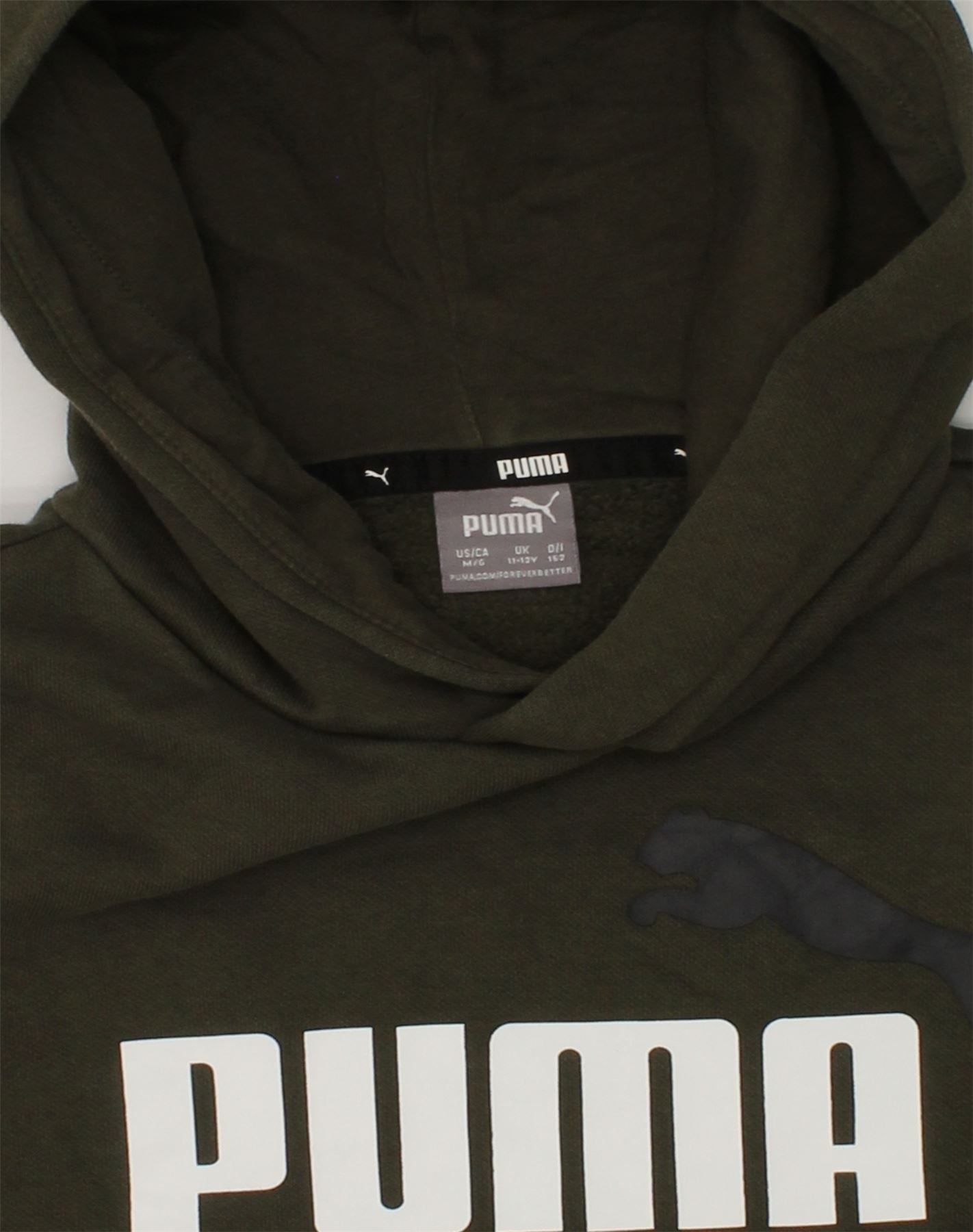 Chłopięcy sweter z kapturem i grafiką PUMA, Wielka Brytania, 11-12 lat, bawełna khaki