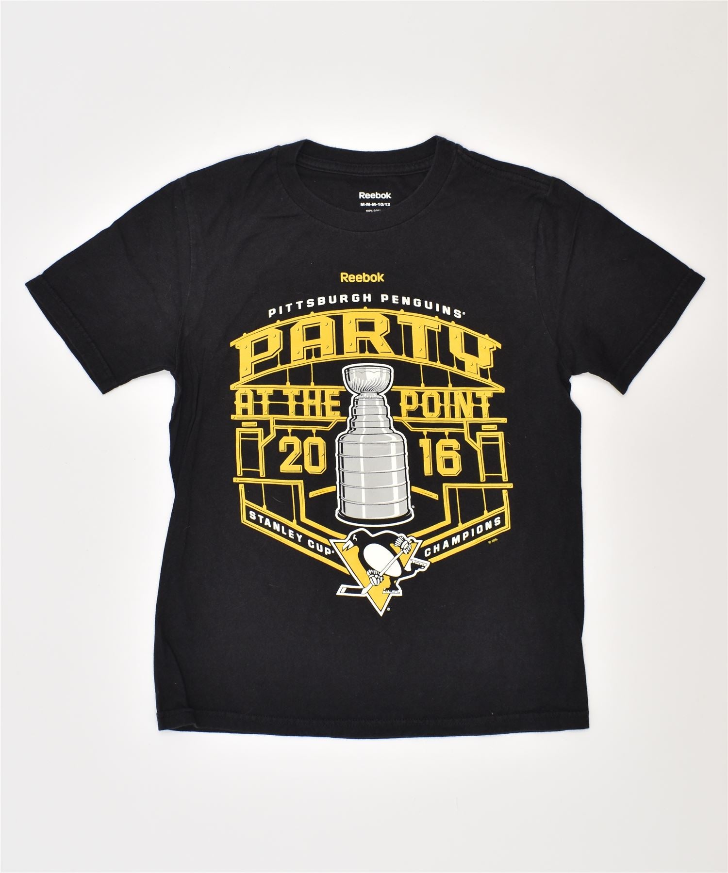 Chłopięcy T-shirt z grafiką REEBOK, 10-11 lat, średnia czarna bawełna