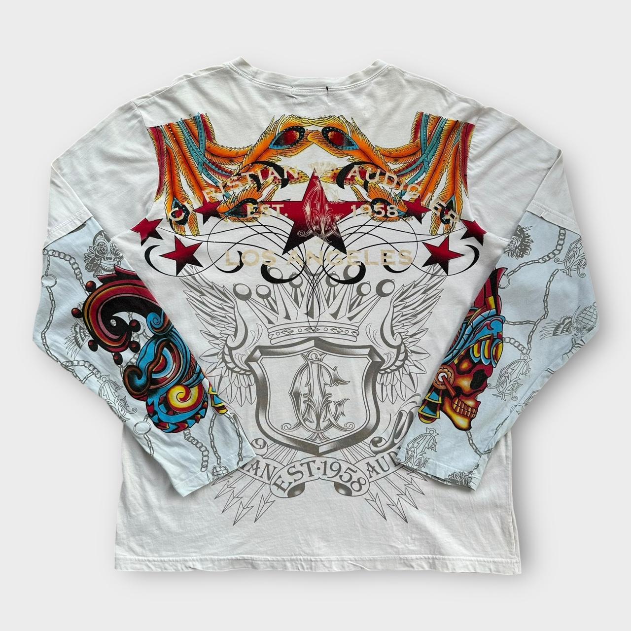 Męski sweter z okrągłym dekoltem w stylu VINTAGE IT 54 XL Niebieska, geometryczna wełna