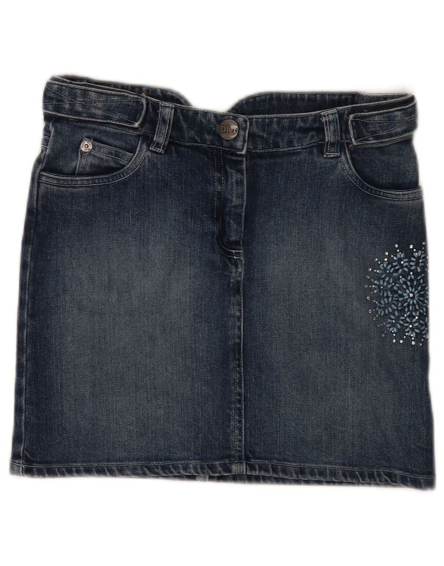 CHRISTIAN DIOR Dziewczęca mini spódniczka dżinsowa 9-10 lat W25 Niebieska bawełniana w kwiaty