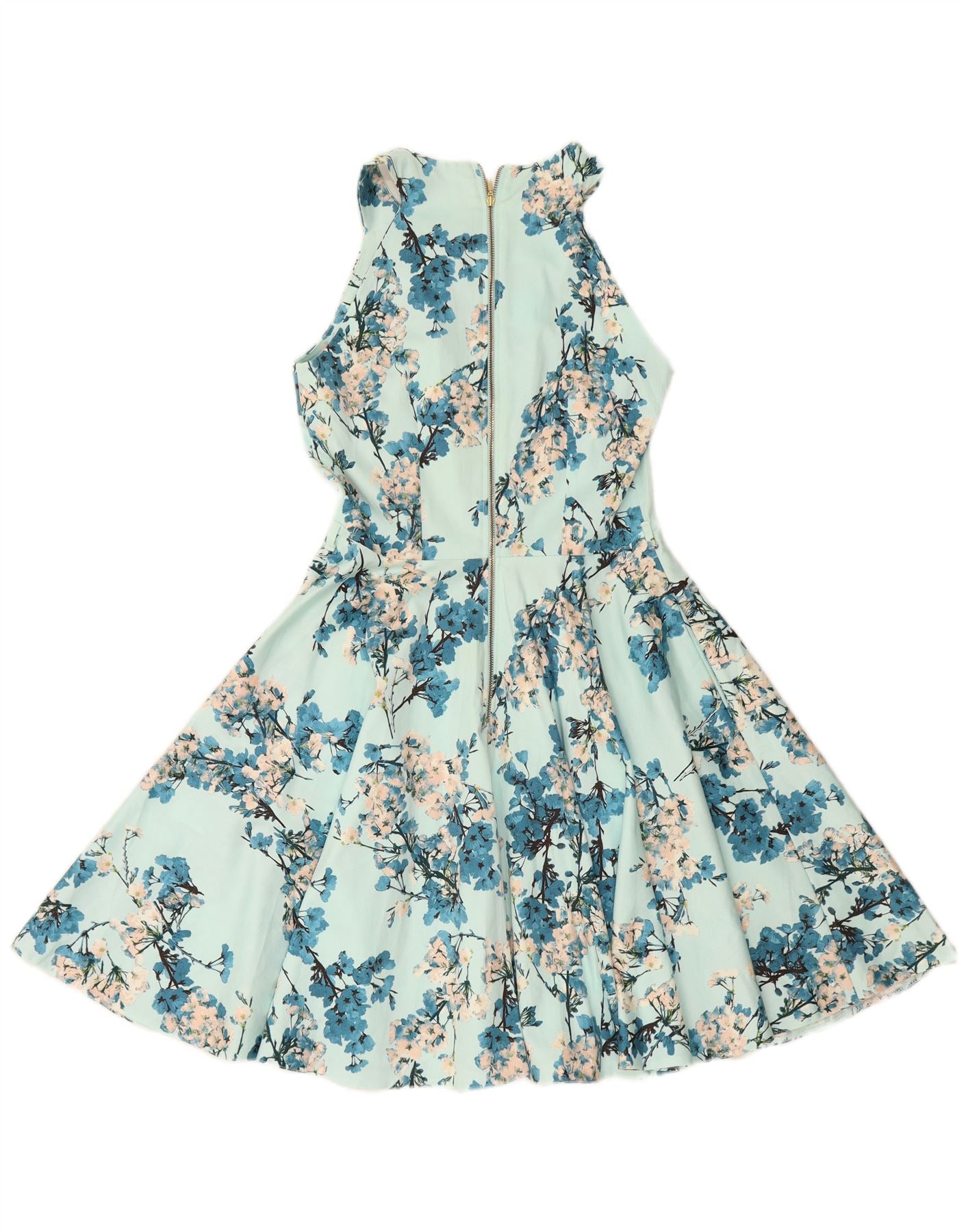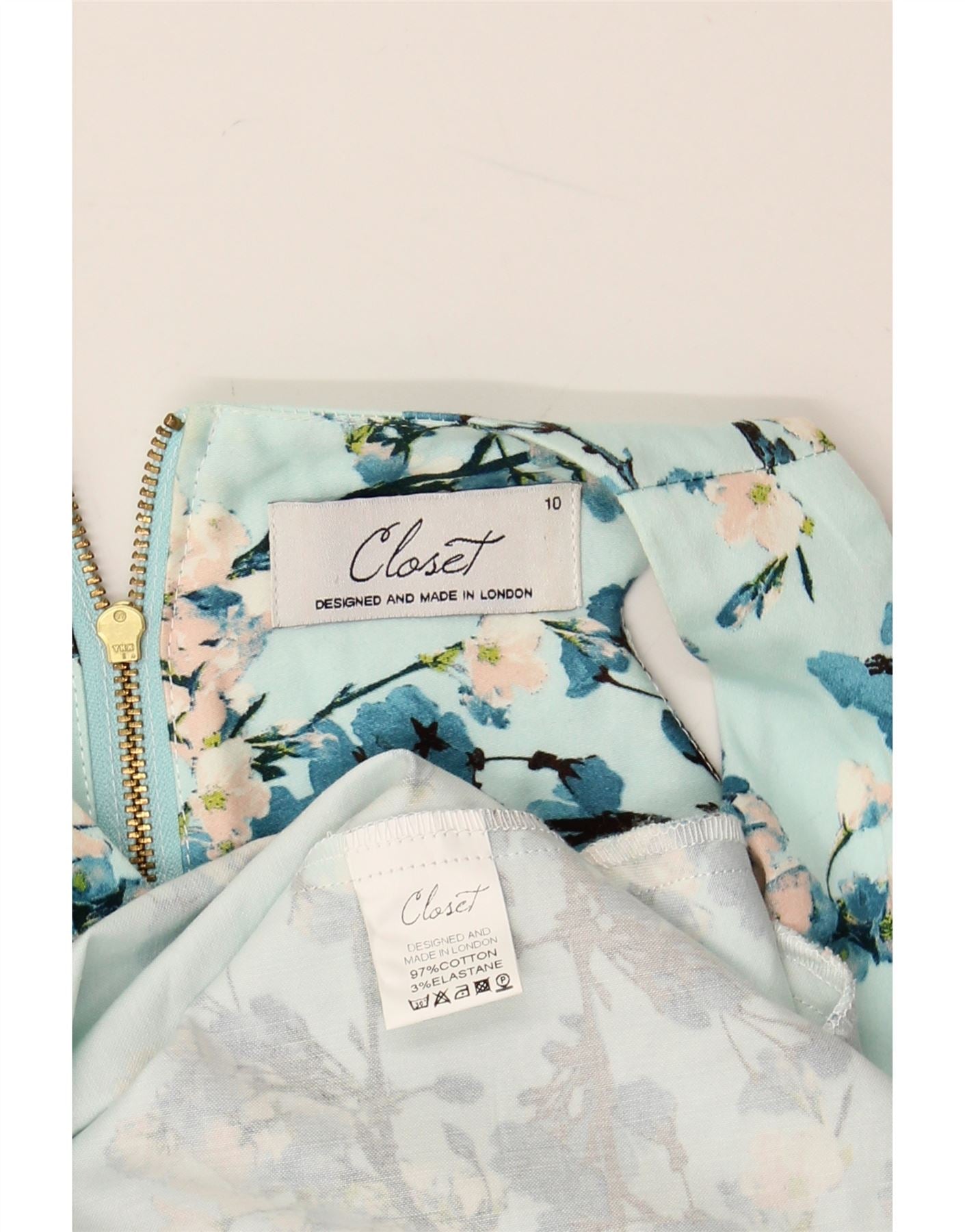 CLOSET Damska sukienka bez rękawów, wiązana na szyi, UK 10, mała, niebieska, z bawełny w kwiaty