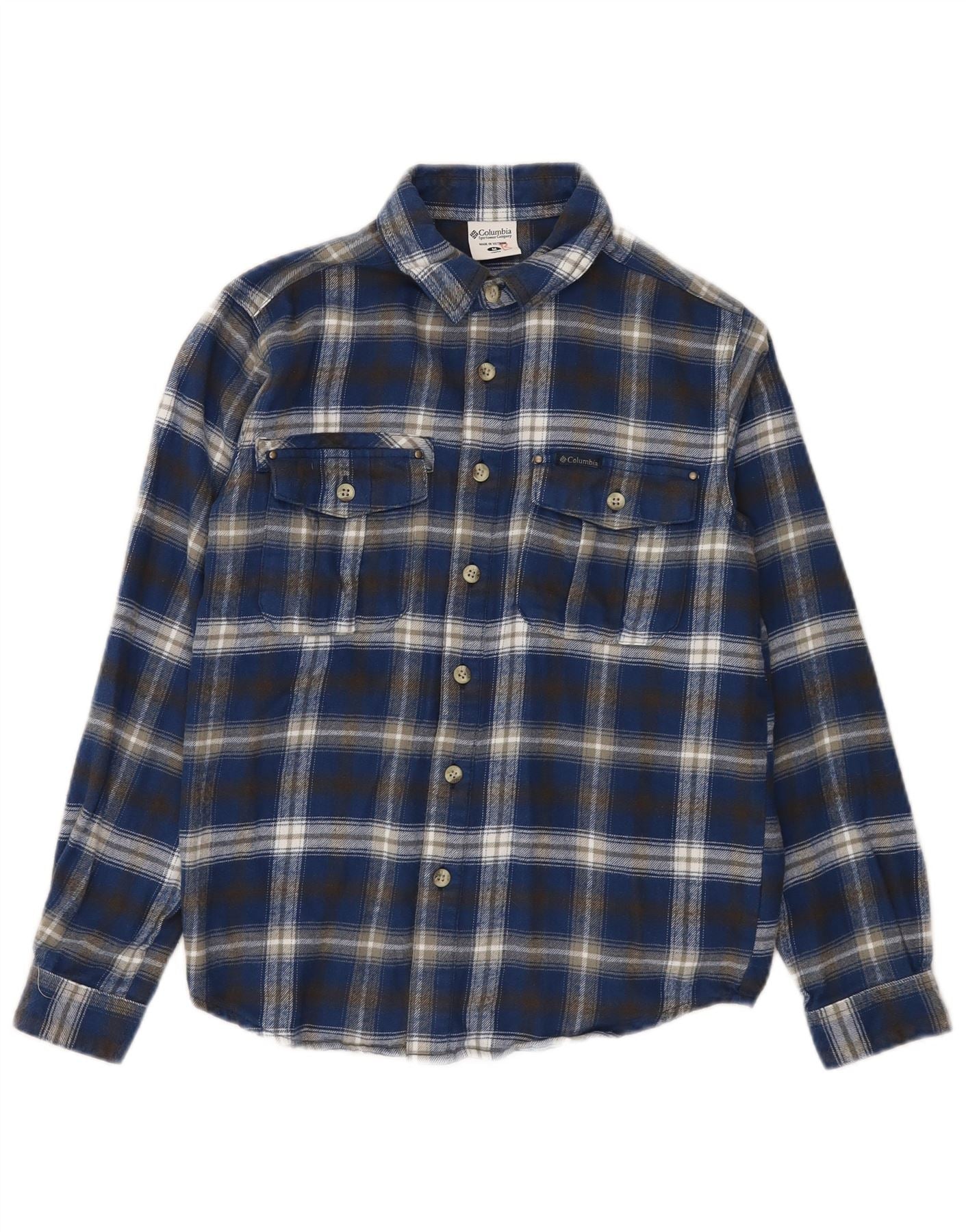 COLUMBIA Boys Flannel Shirt 10-11 Years Medium Blue Check Cotton