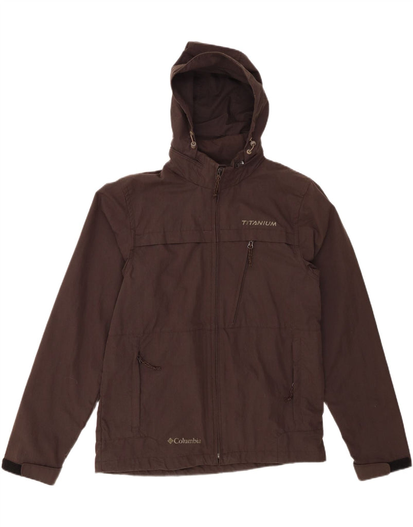 Męska kurtka przeciwdeszczowa z kapturem COLUMBIA, tytanowa, UK 36, mała, brązowa, bawełniana